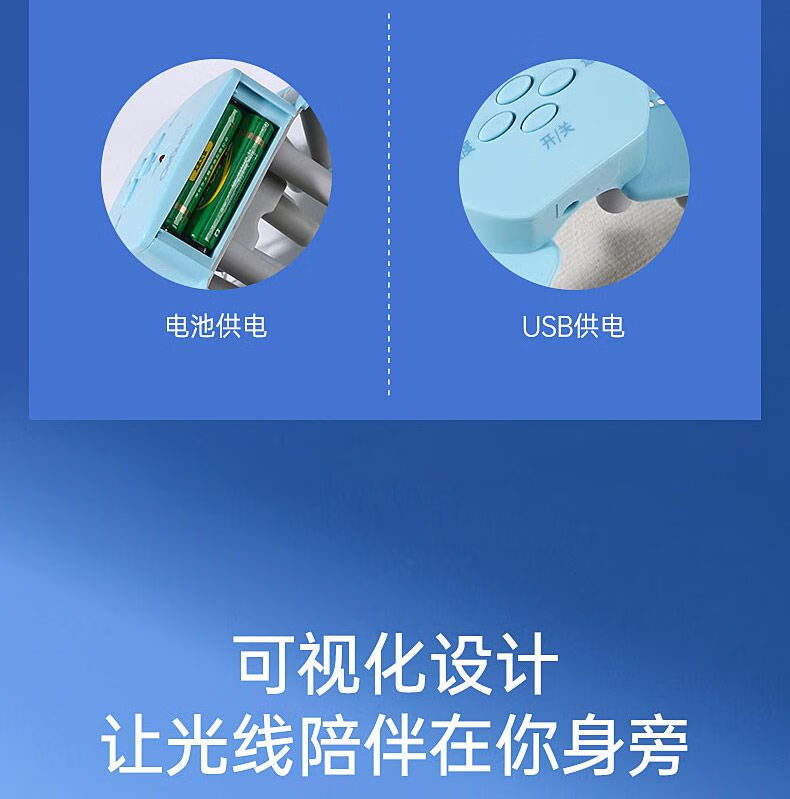 电源:2节AAA电池 3V DC 200mA或USB供电