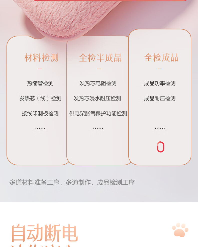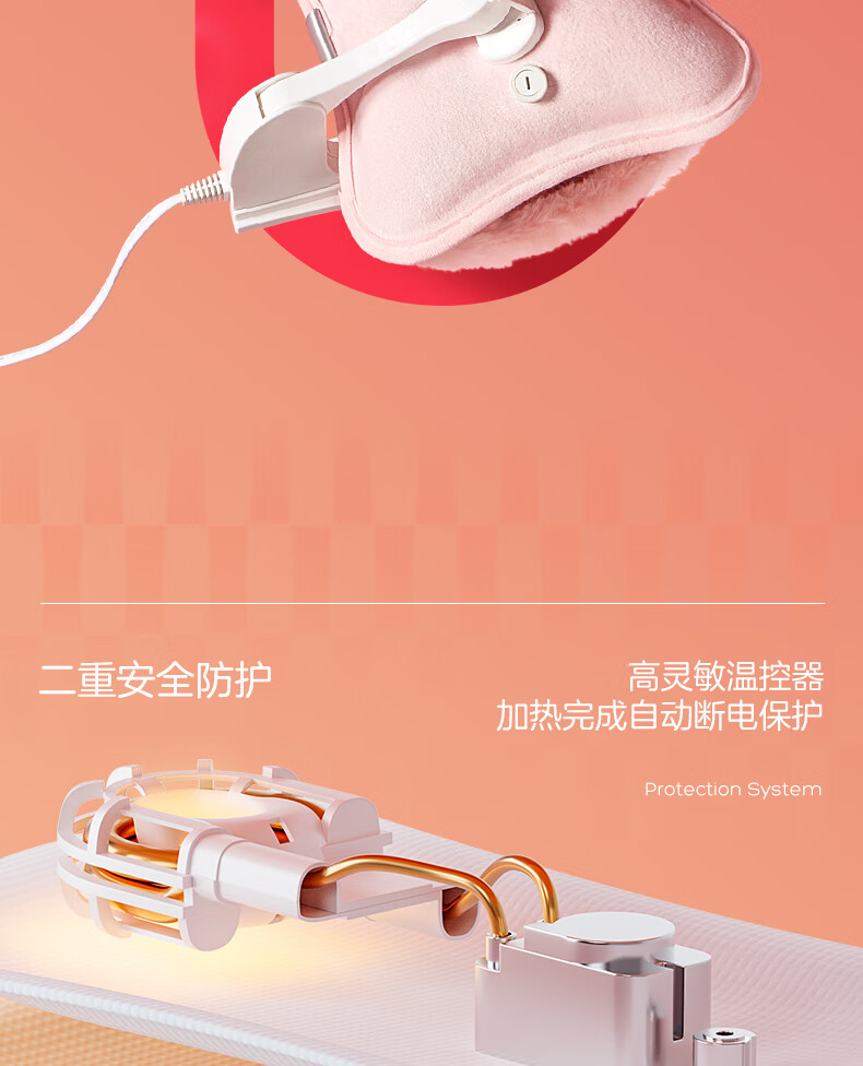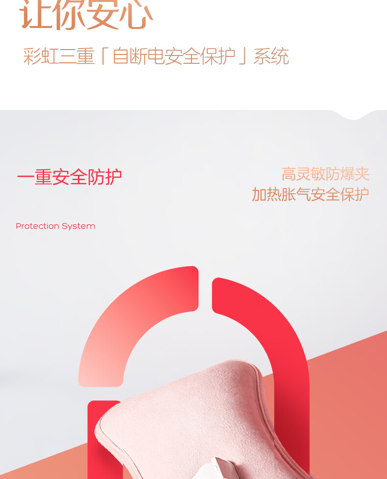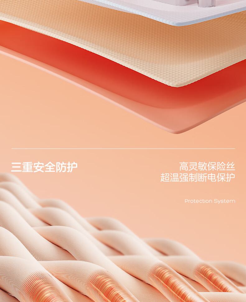 优质亲肤绒;七重安全保护;水电隔离,自动控温限温