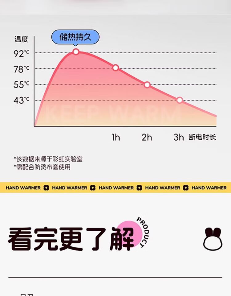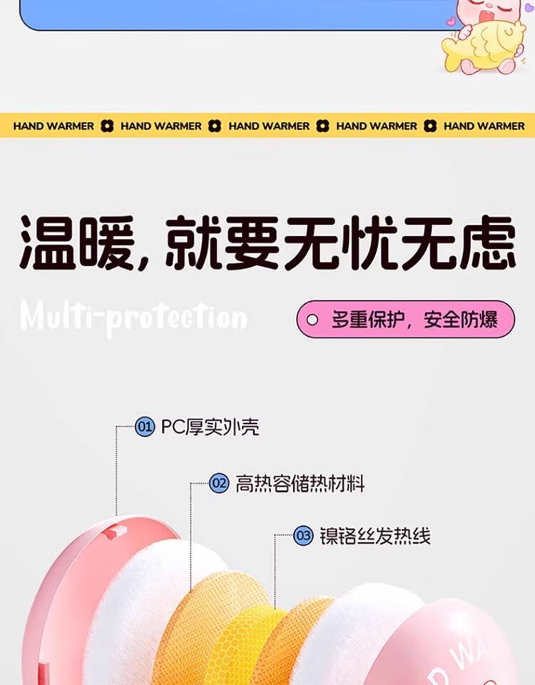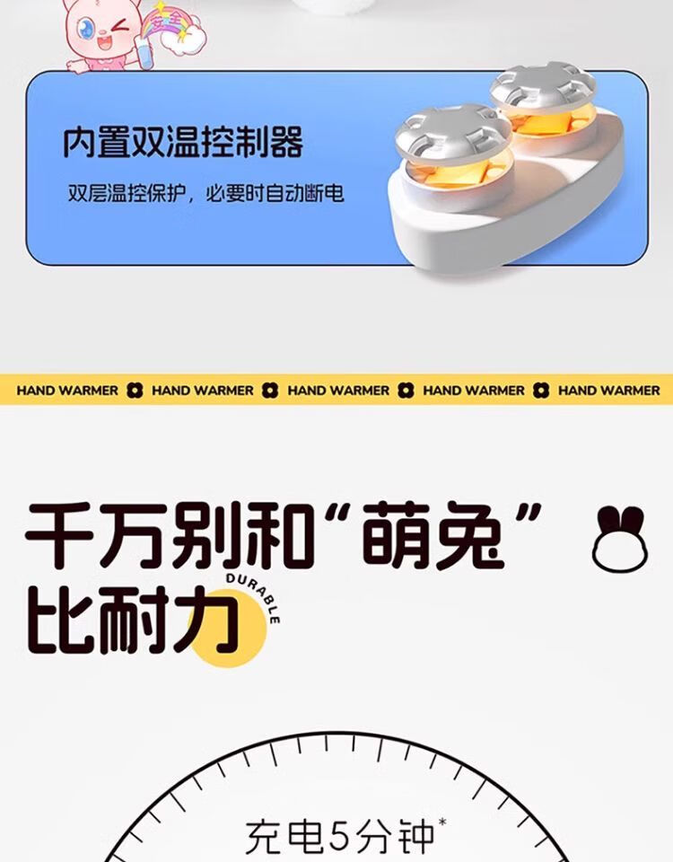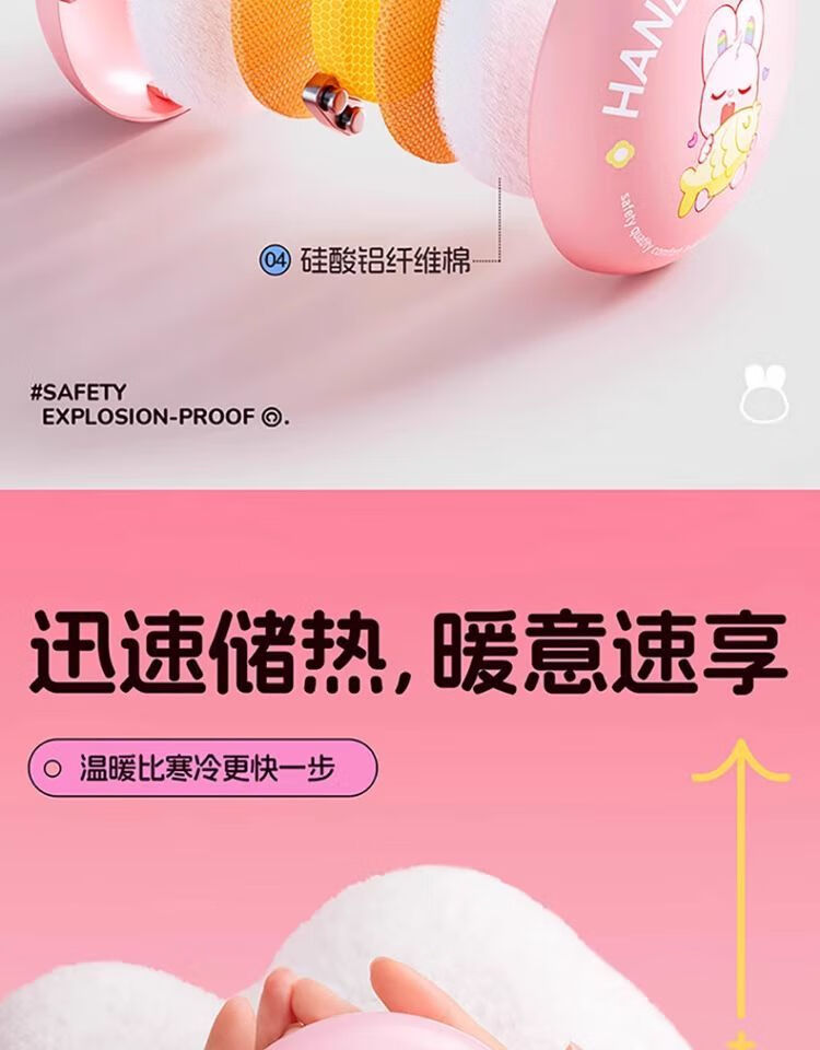 采用PC阻燃外壳,坚固耐用手感更佳;内置双温控器,自动控混,自动断电,安全可靠;采用多层高级储热材质,6-10分钟快速储放