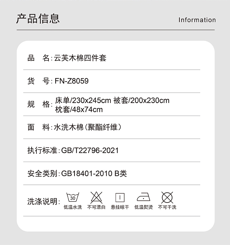 升级款水洗木棉面料;轻柔糯绵,亲肤舒适;活性印染,花型立体