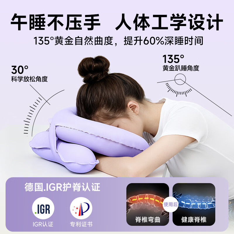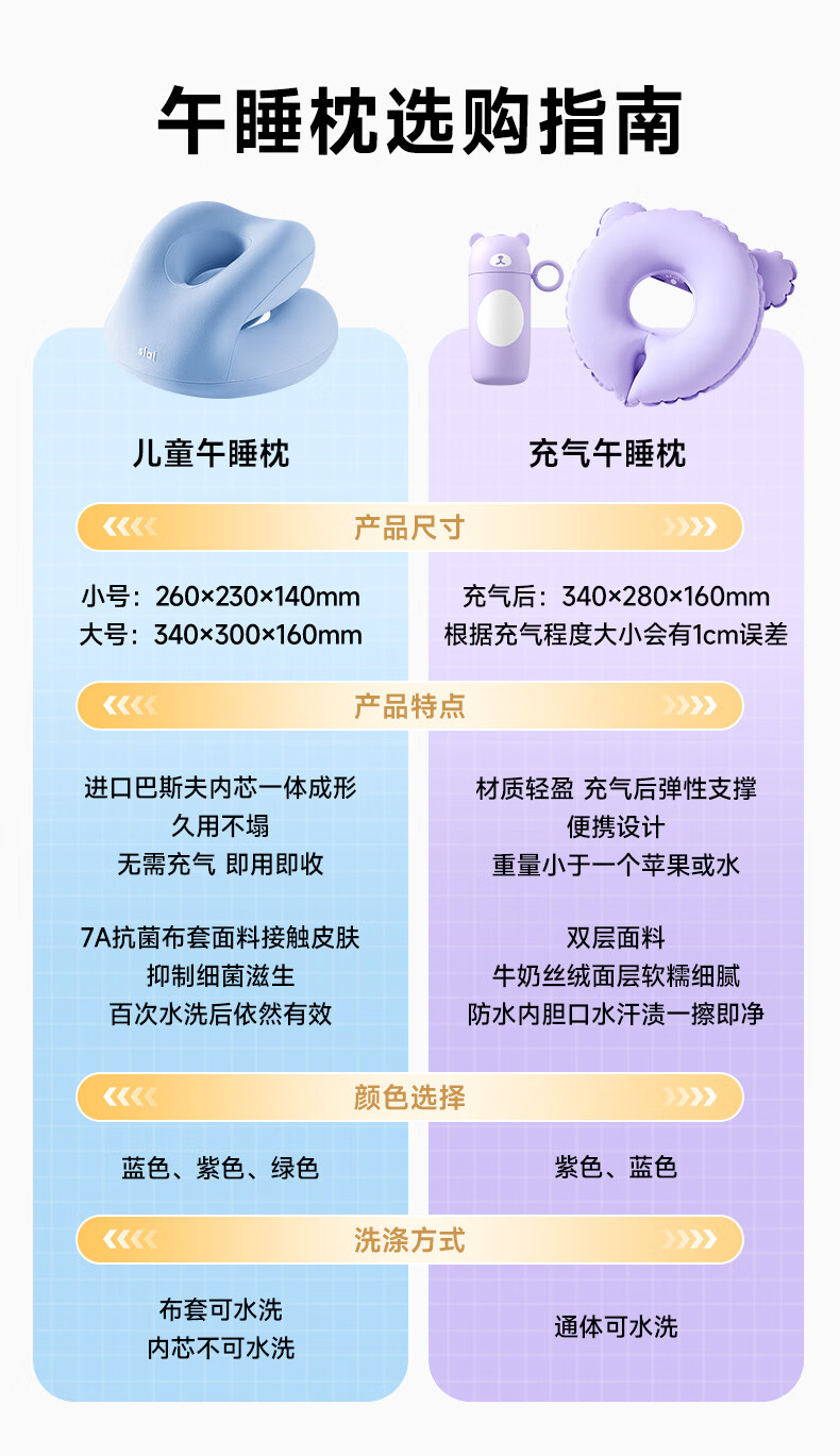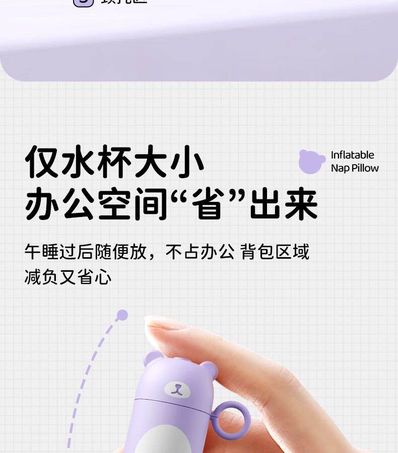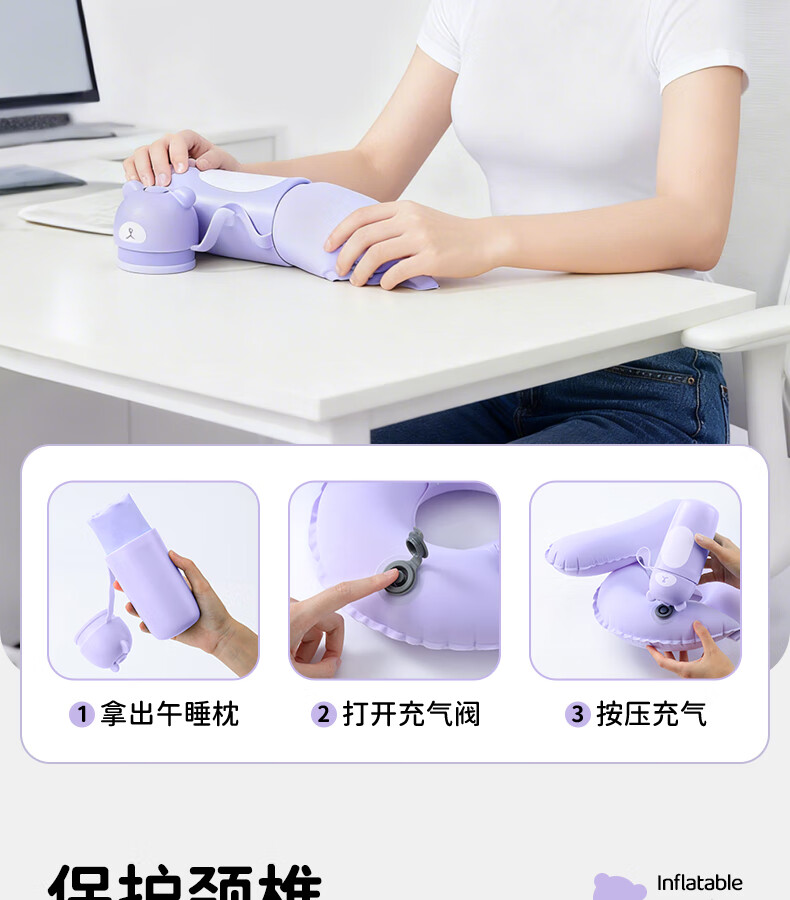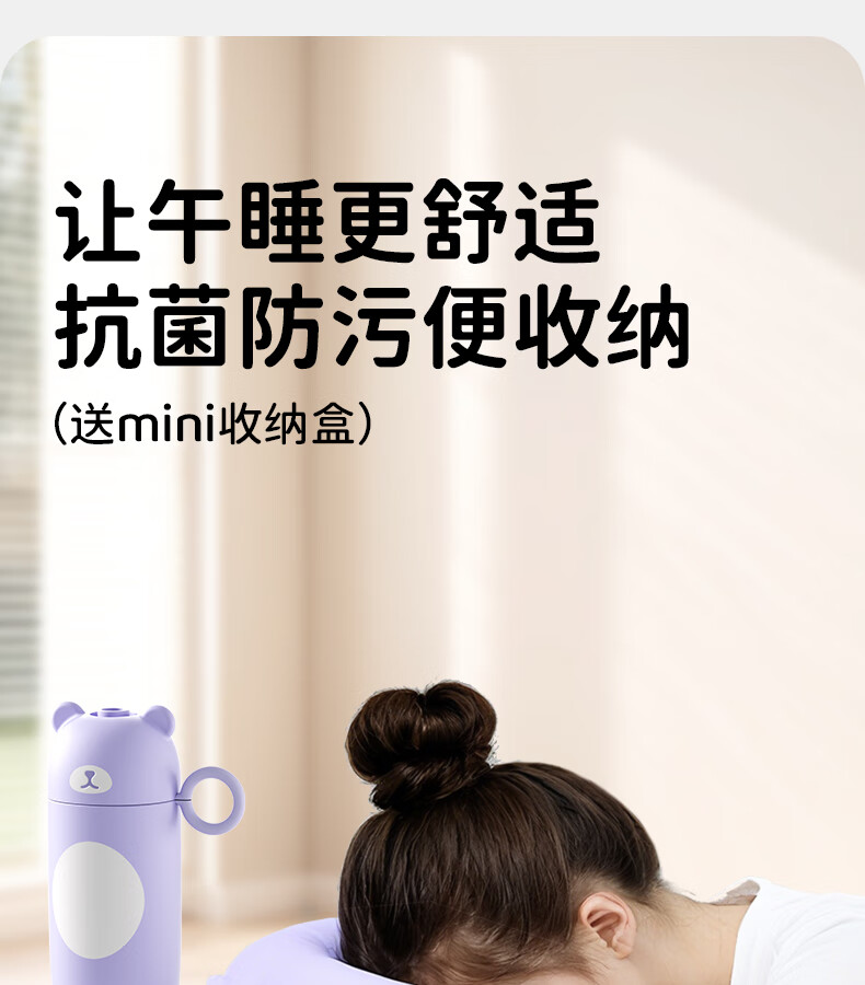 材质轻盈,充气后弹性支撑便携设计;双层面料牛奶丝绒面层软糯细腻;防水内胆口水汗渍一擦即净