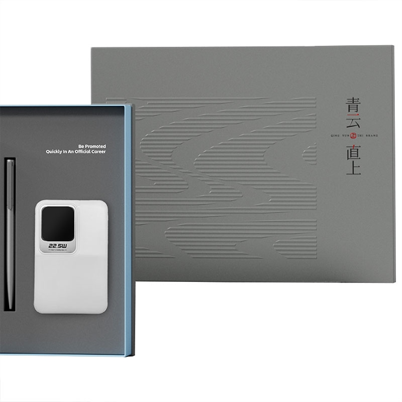 笔记本承载灵感与规划,记录事业跃升的每个里程碑;金属签字笔以流畅笔锋镌刻决策瞬间;10000毫安大容量快充充电宝,支持急速补能