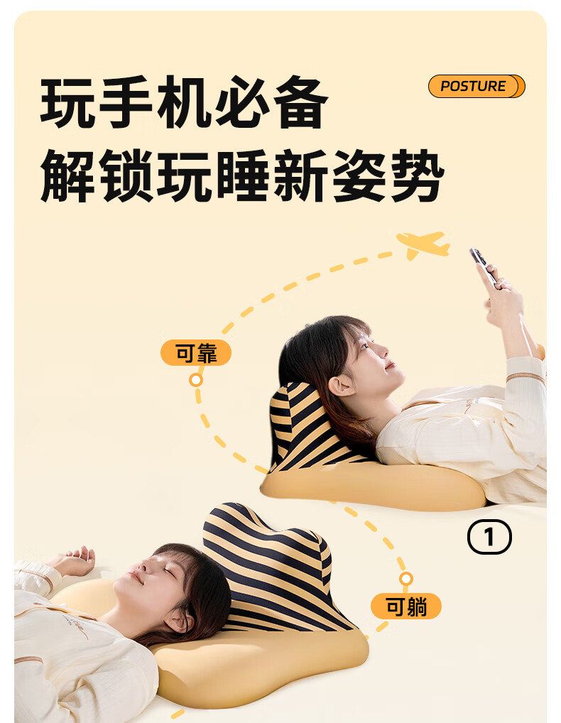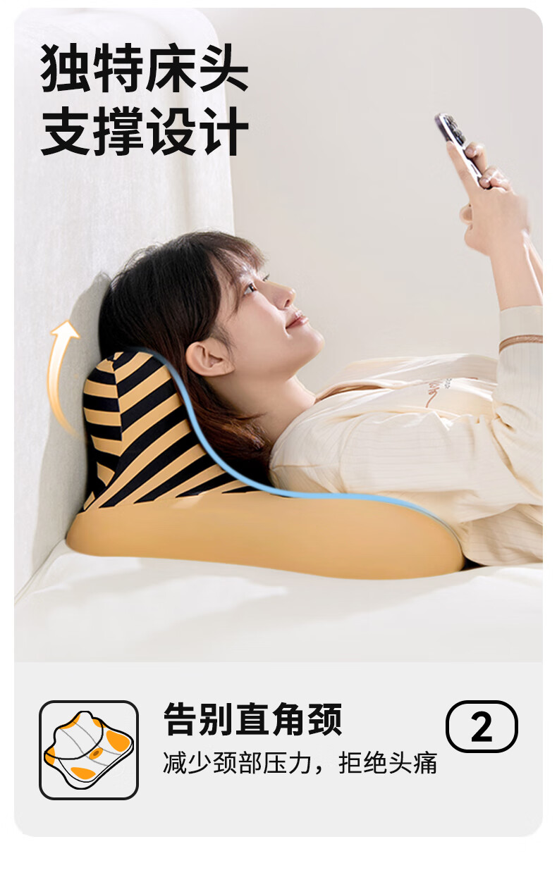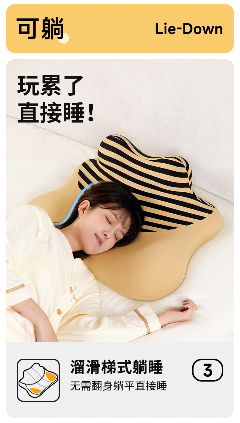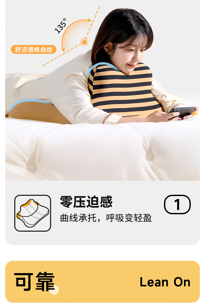 【科学分区】满足多种睡姿及感受;贴合各种身材曲线,舒适不压胸;坡度顺滑刚刚好,玩手机累了滑下去直接睡