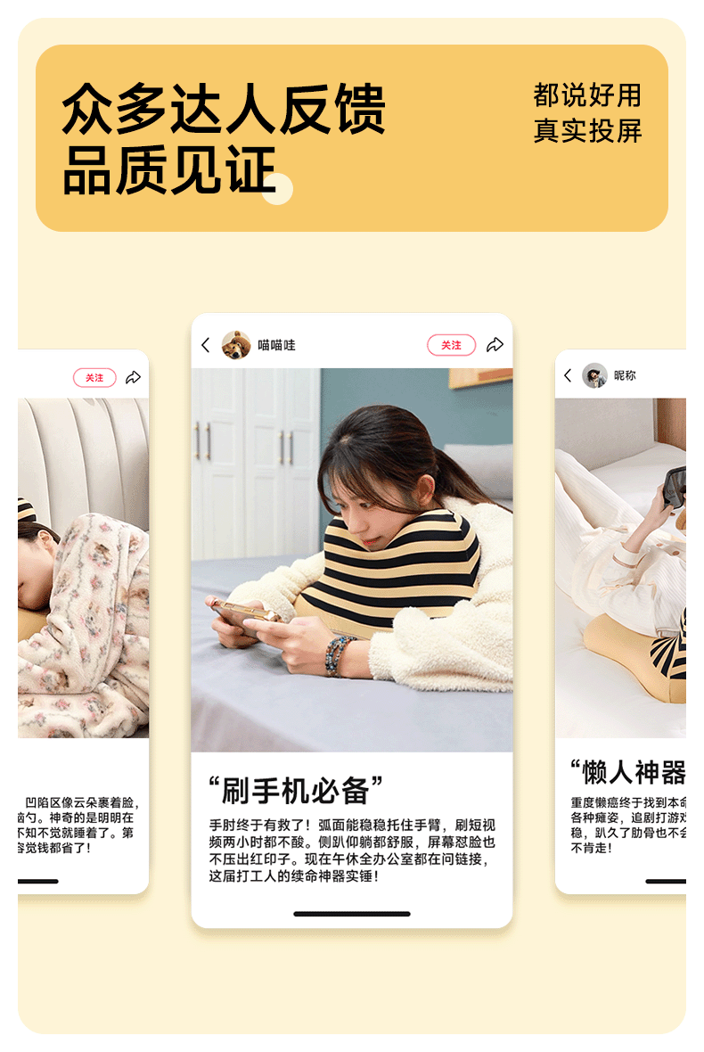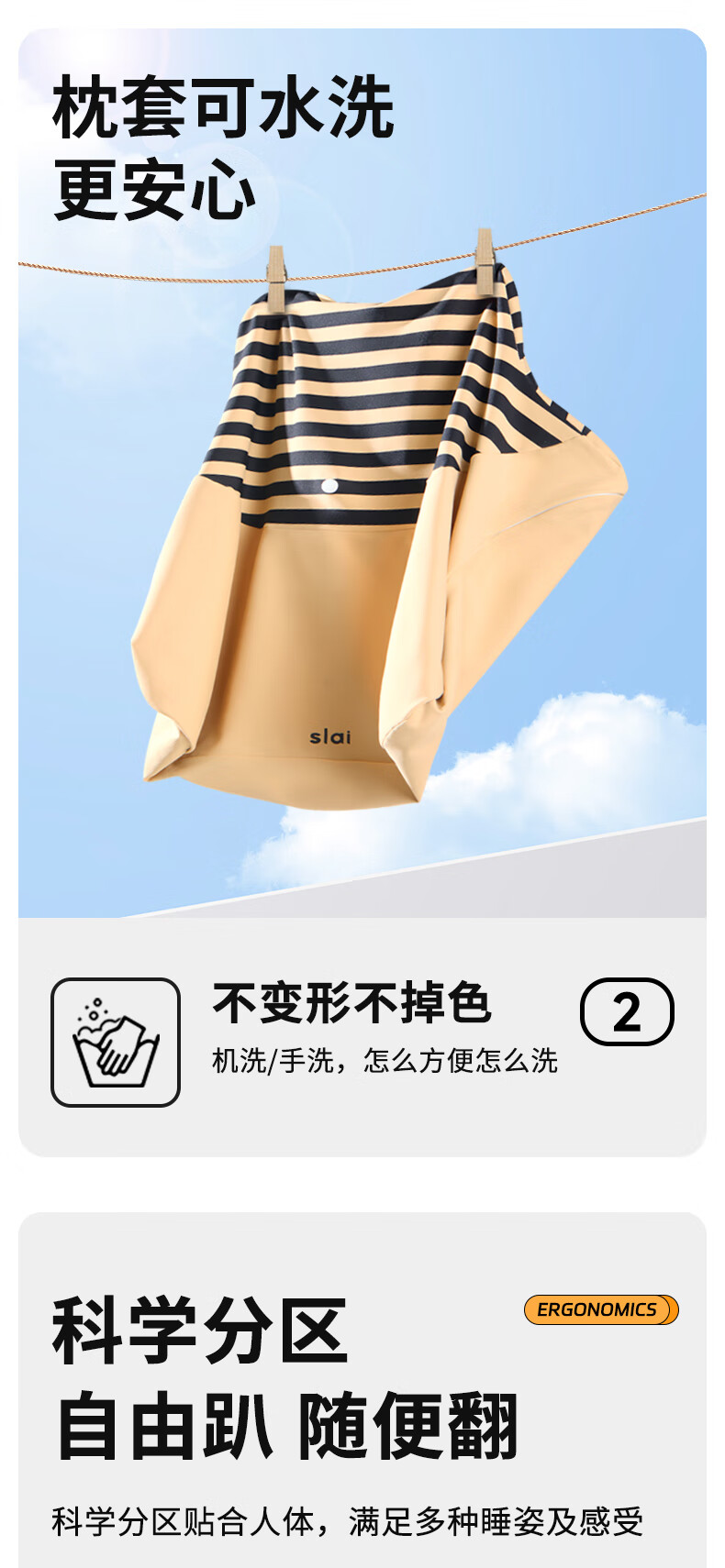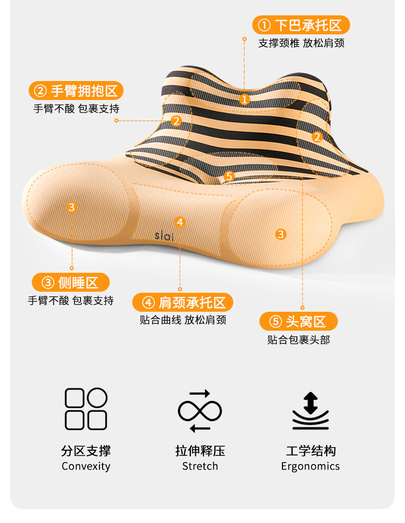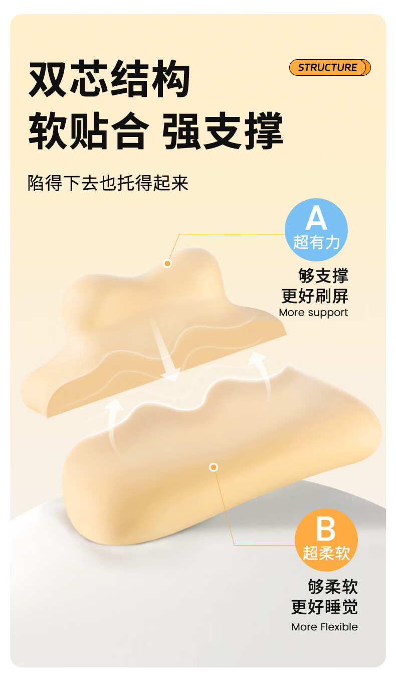 【科学分区】满足多种睡姿及感受;贴合各种身材曲线,舒适不压胸;坡度顺滑刚刚好,玩手机累了滑下去直接睡