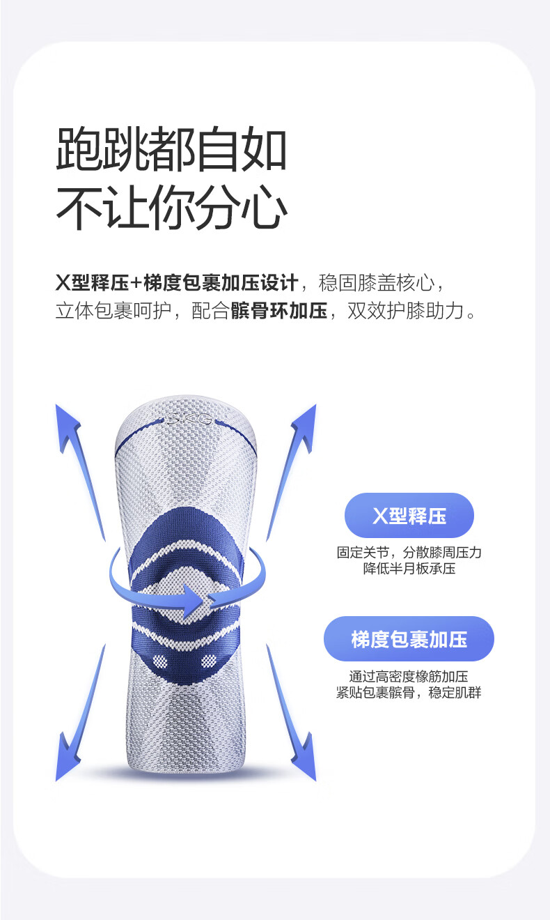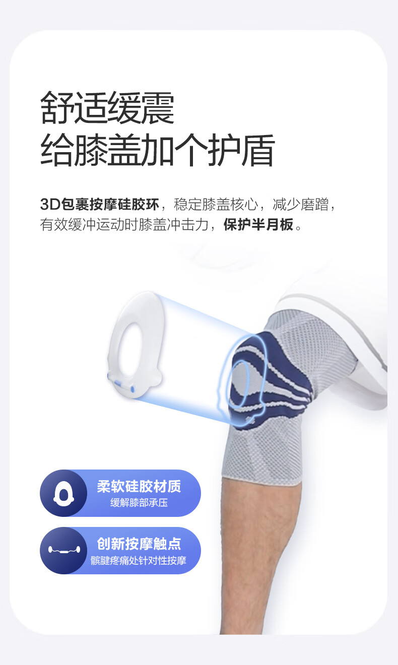 3D立体编织-人体工学贴合;记忆金属支撑条-自适应支撑;创新按摩硅胶圈