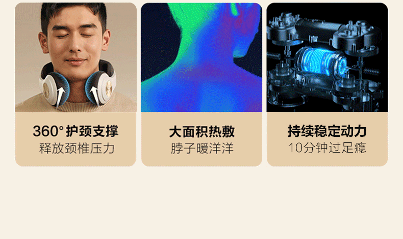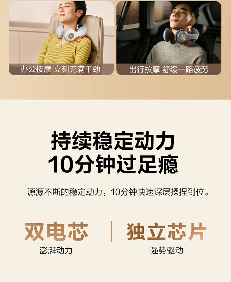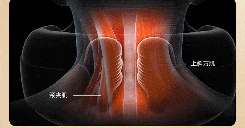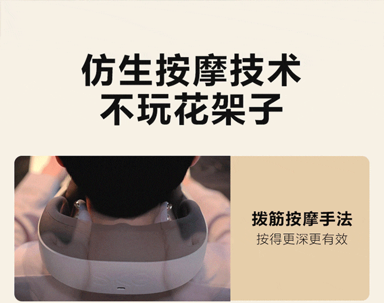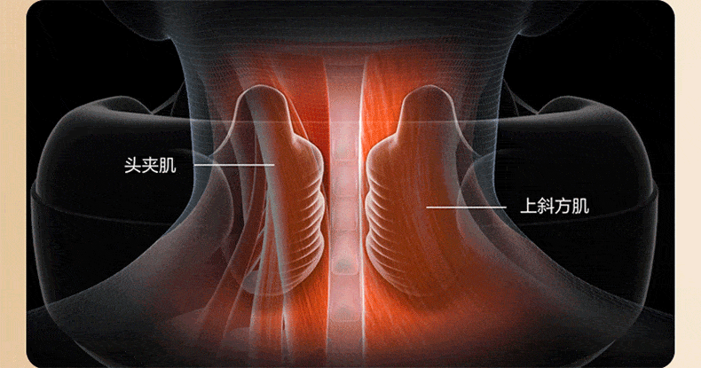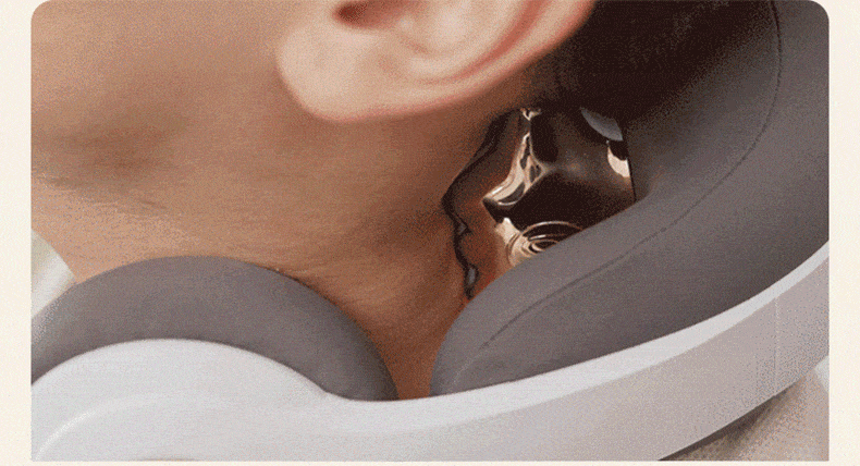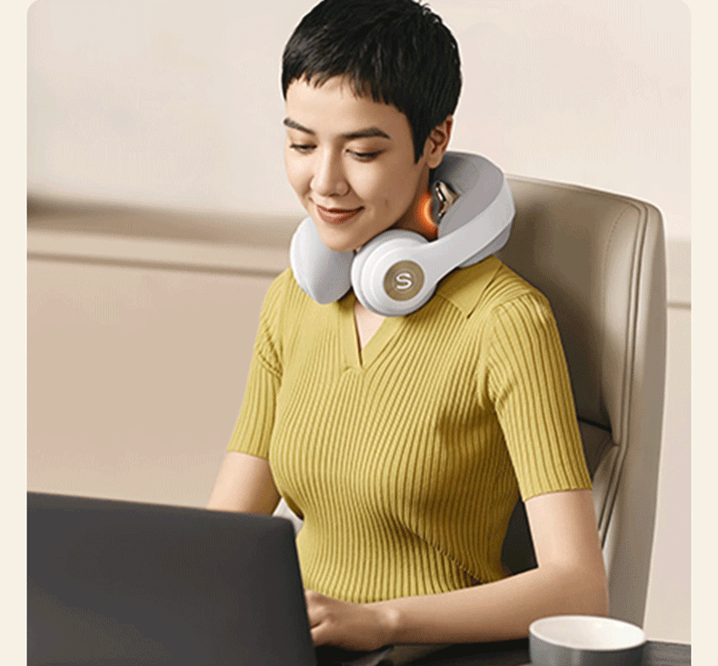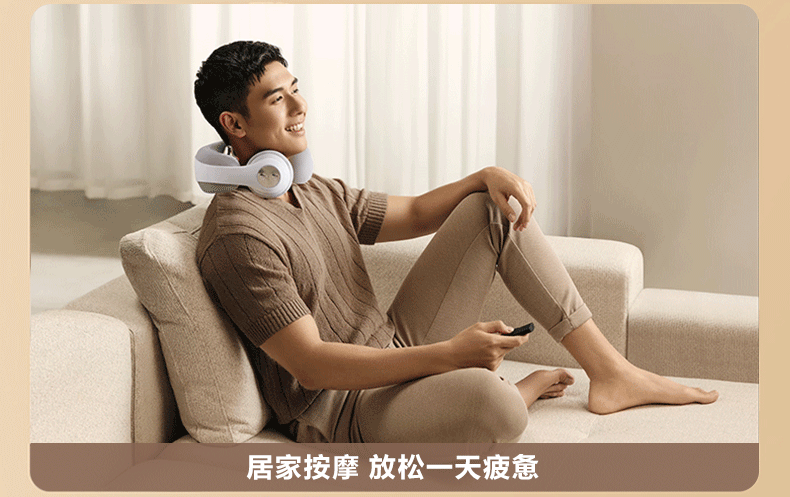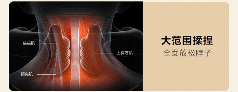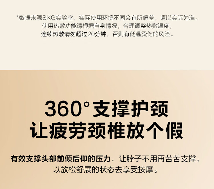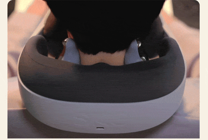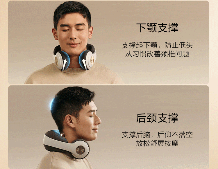 四点夹持的设计+整体弹性支架环绕;时尚外观造型-头戴耳机式;支撑颈椎设计-按摩支撑两不误