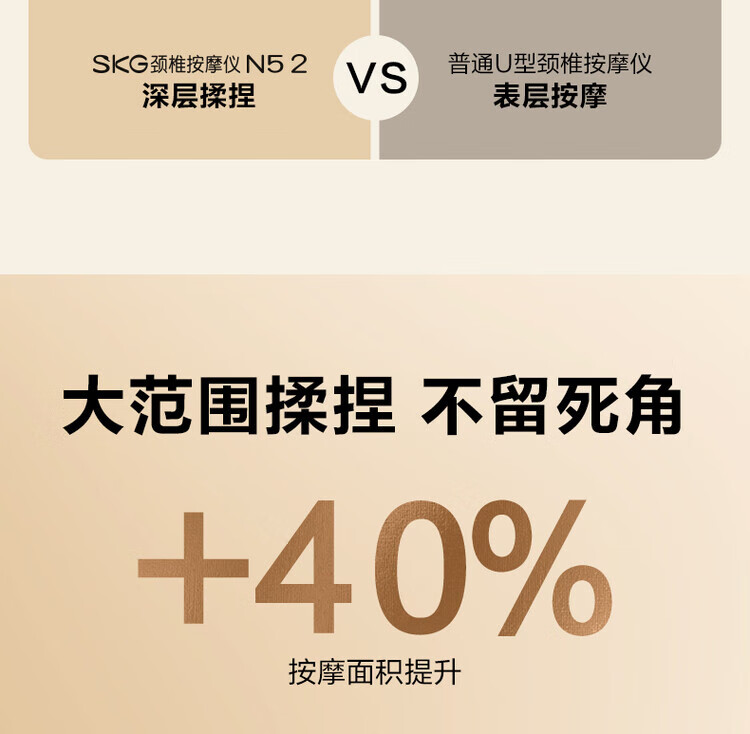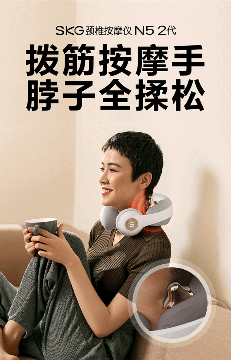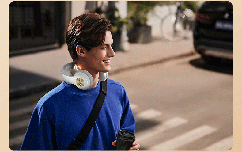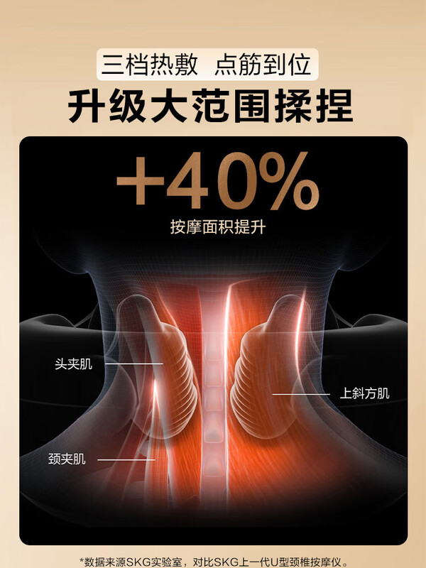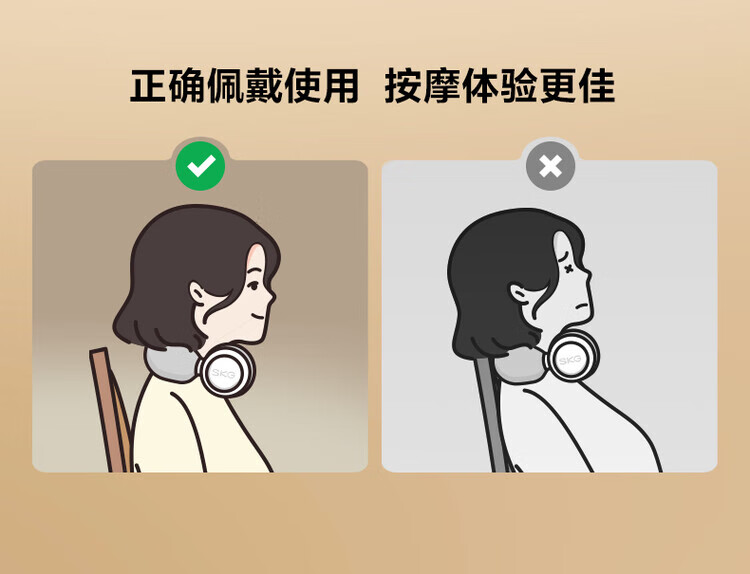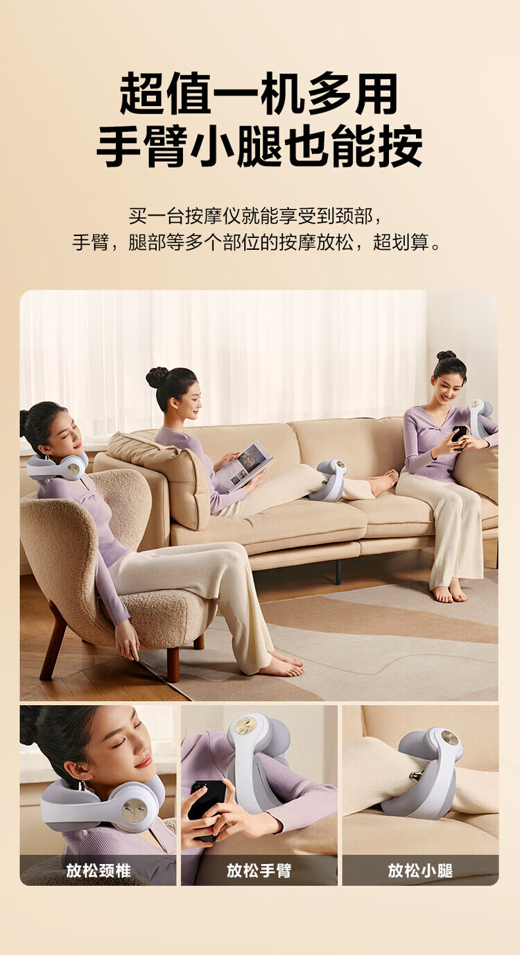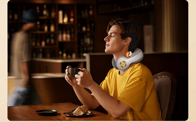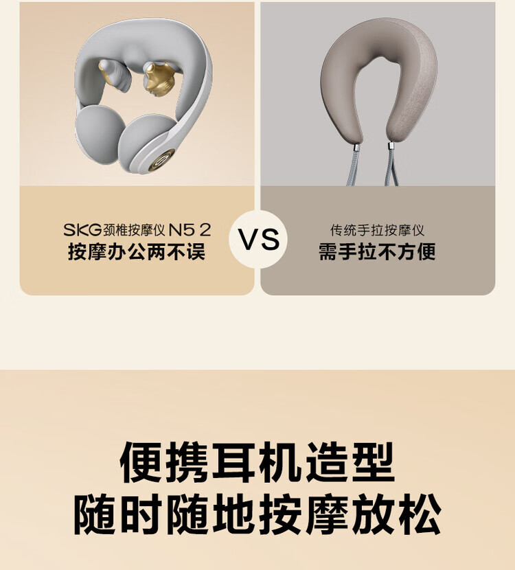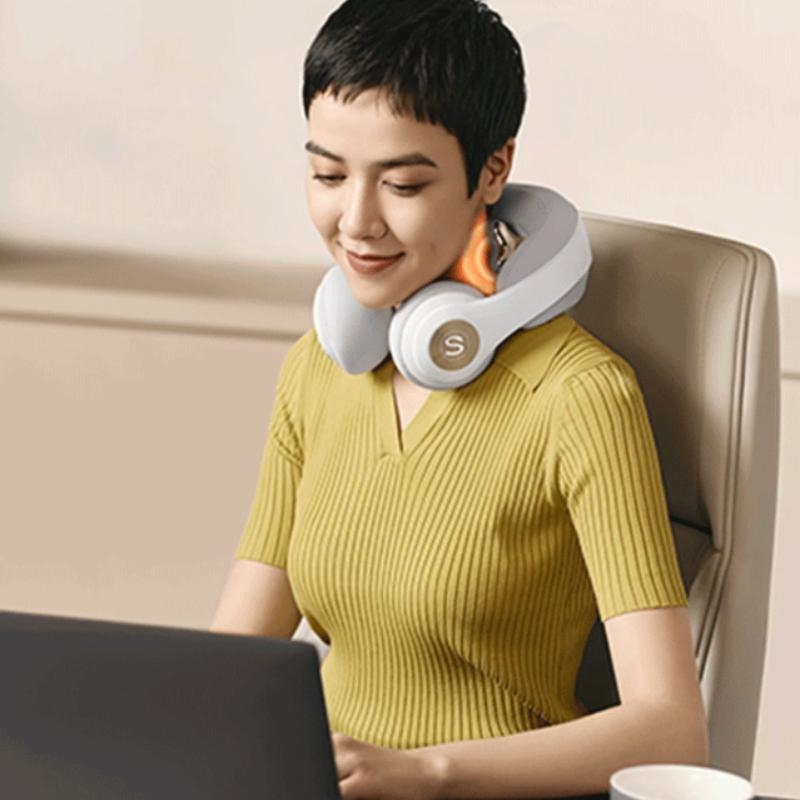 四点夹持的设计+整体弹性支架环绕;时尚外观造型-头戴耳机式;支撑颈椎设计-按摩支撑两不误