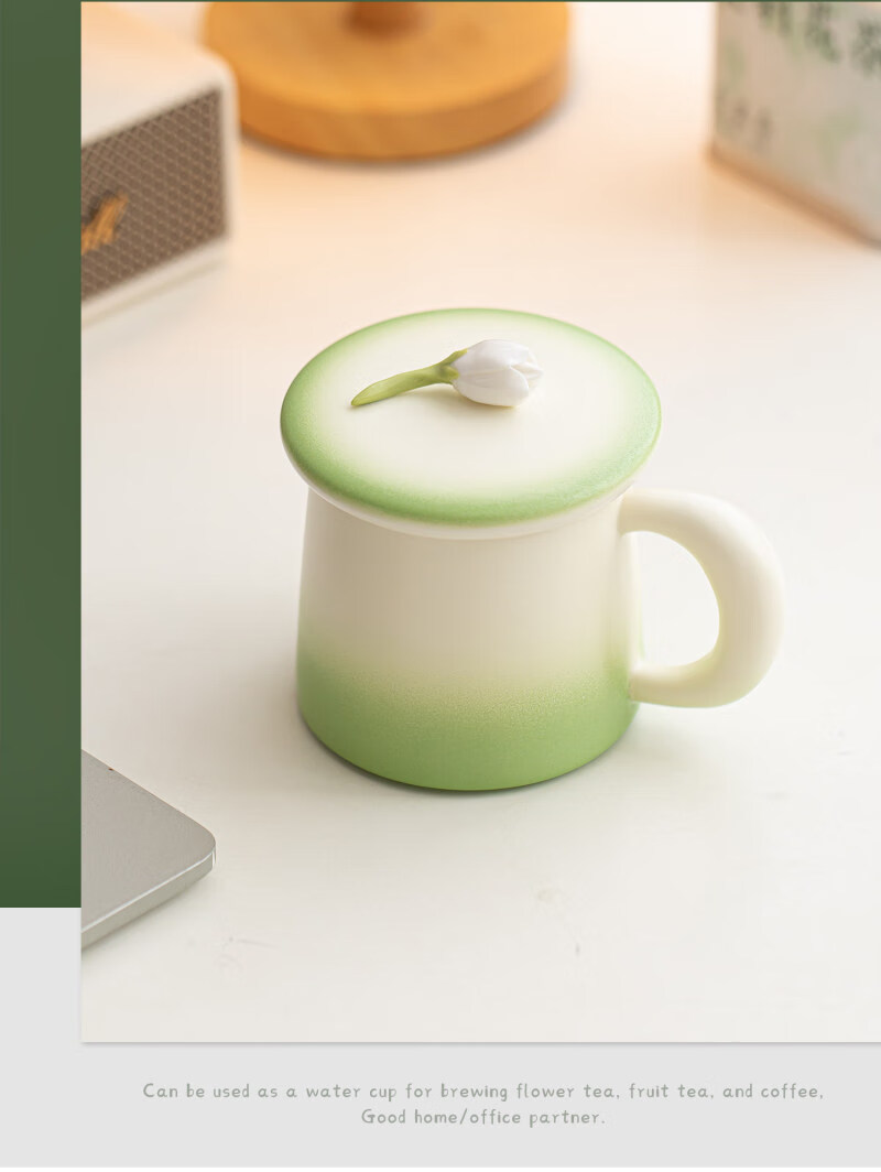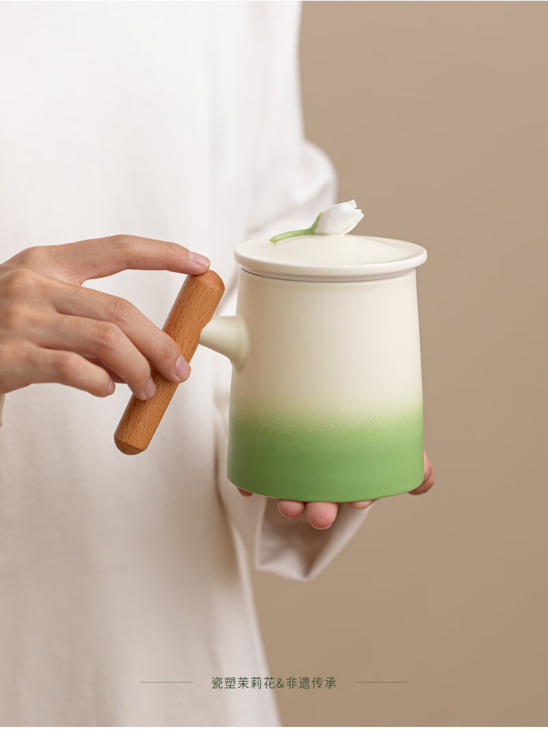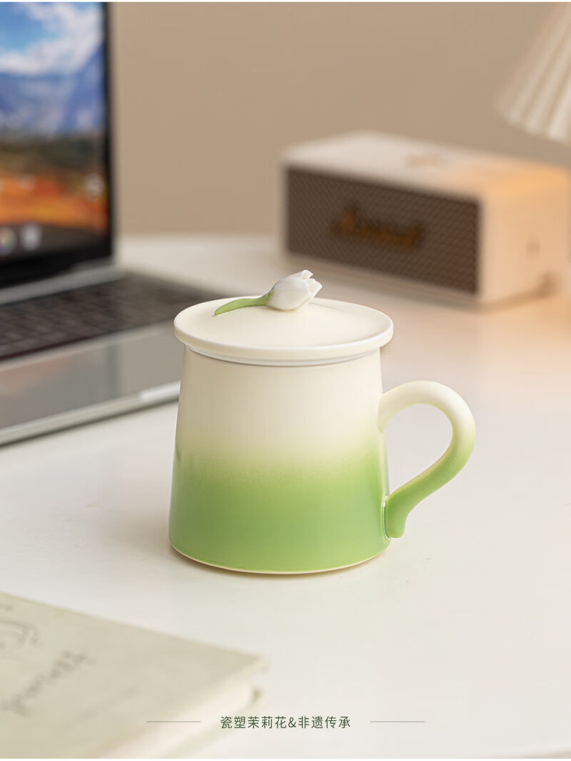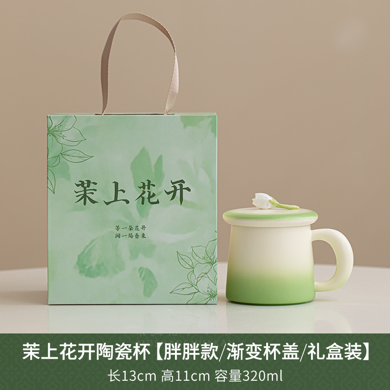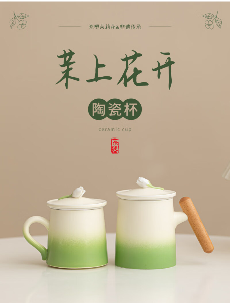 易硕 陶瓷茉上花开马克杯茶杯办公杯