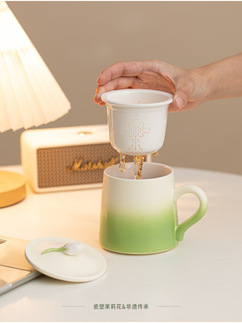 还原茉莉清雅之姿;造型雅致,兼具实用性与艺术感;瓷塑茉莉花瓣层叠灵动,釉色温润如玉