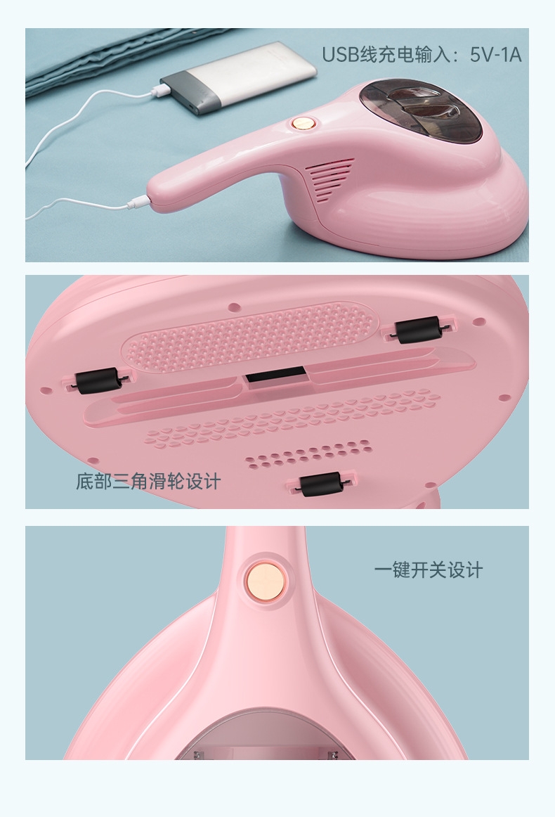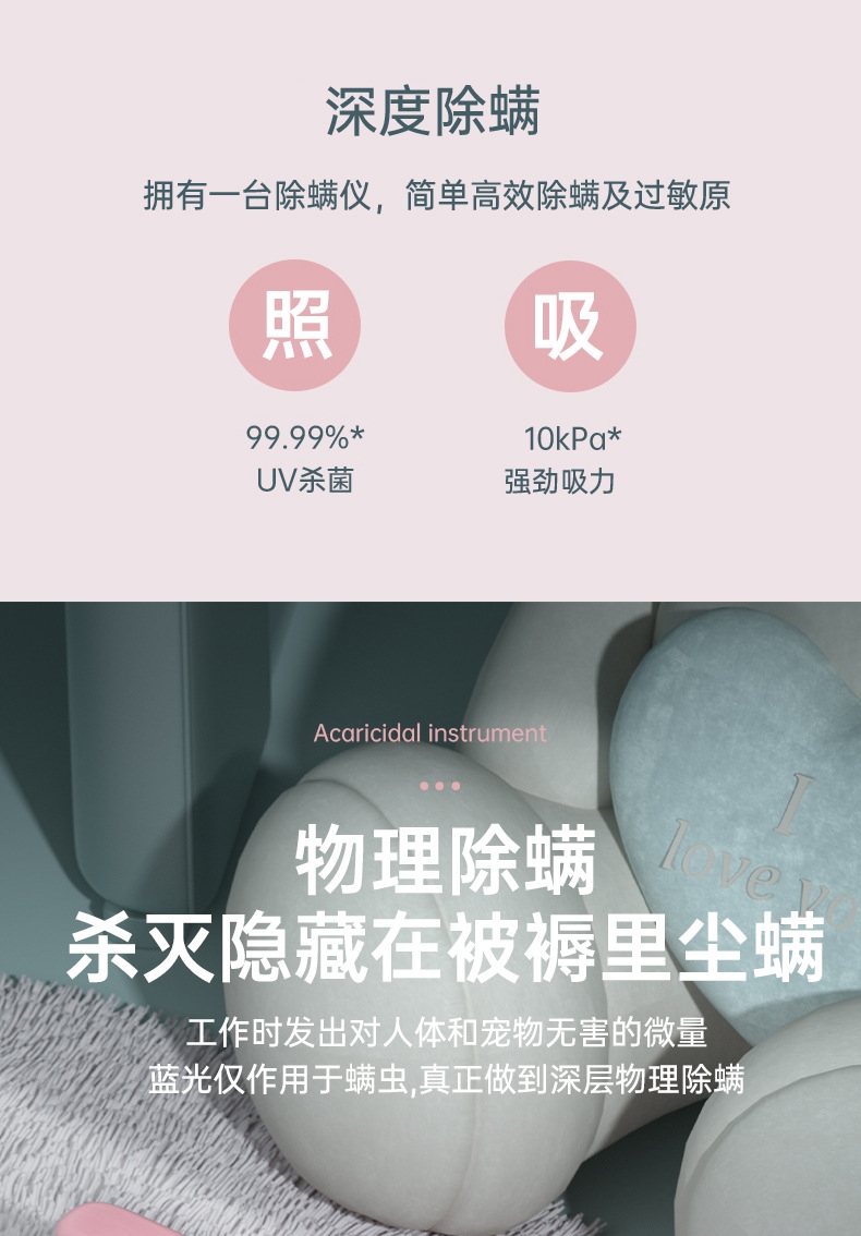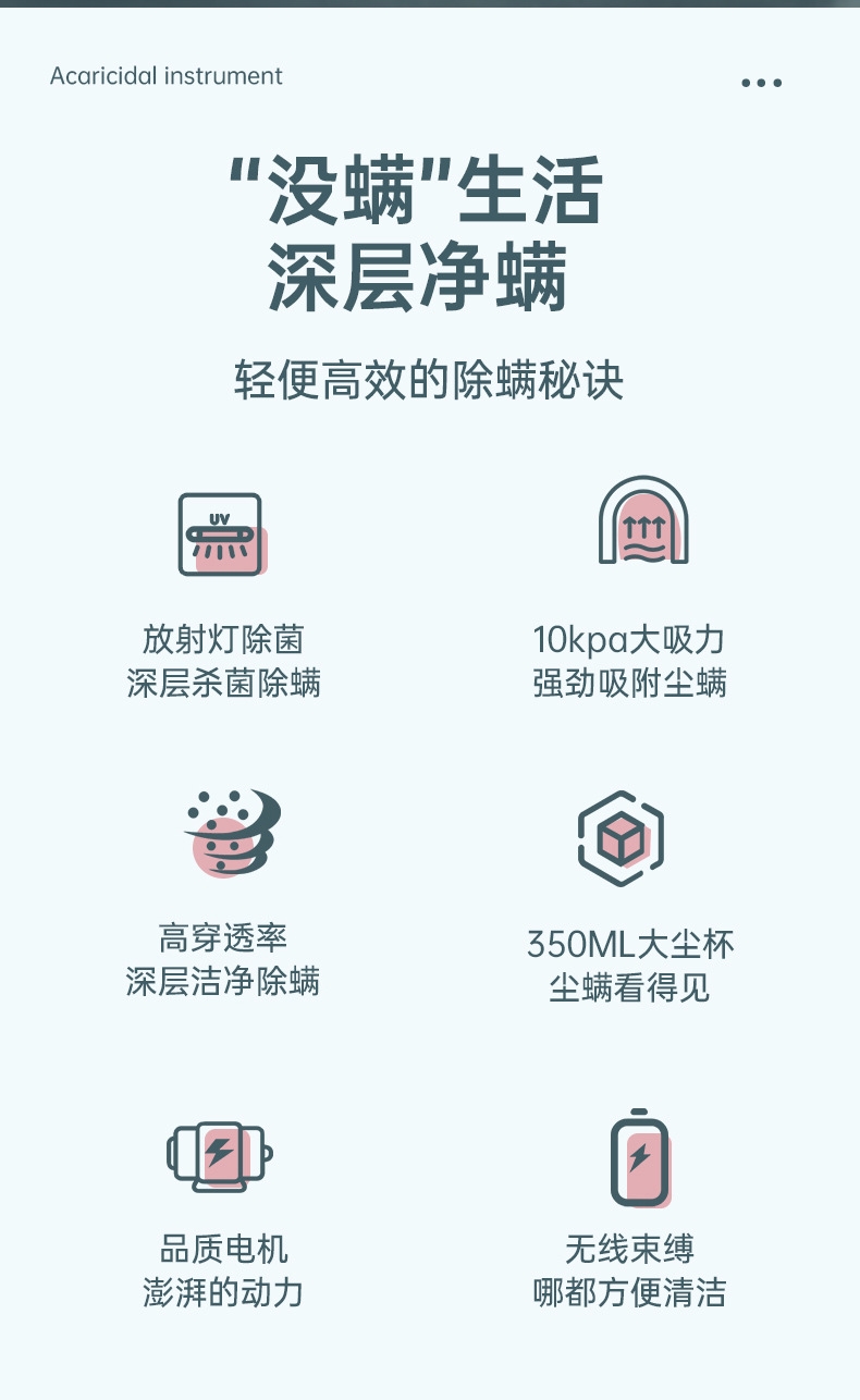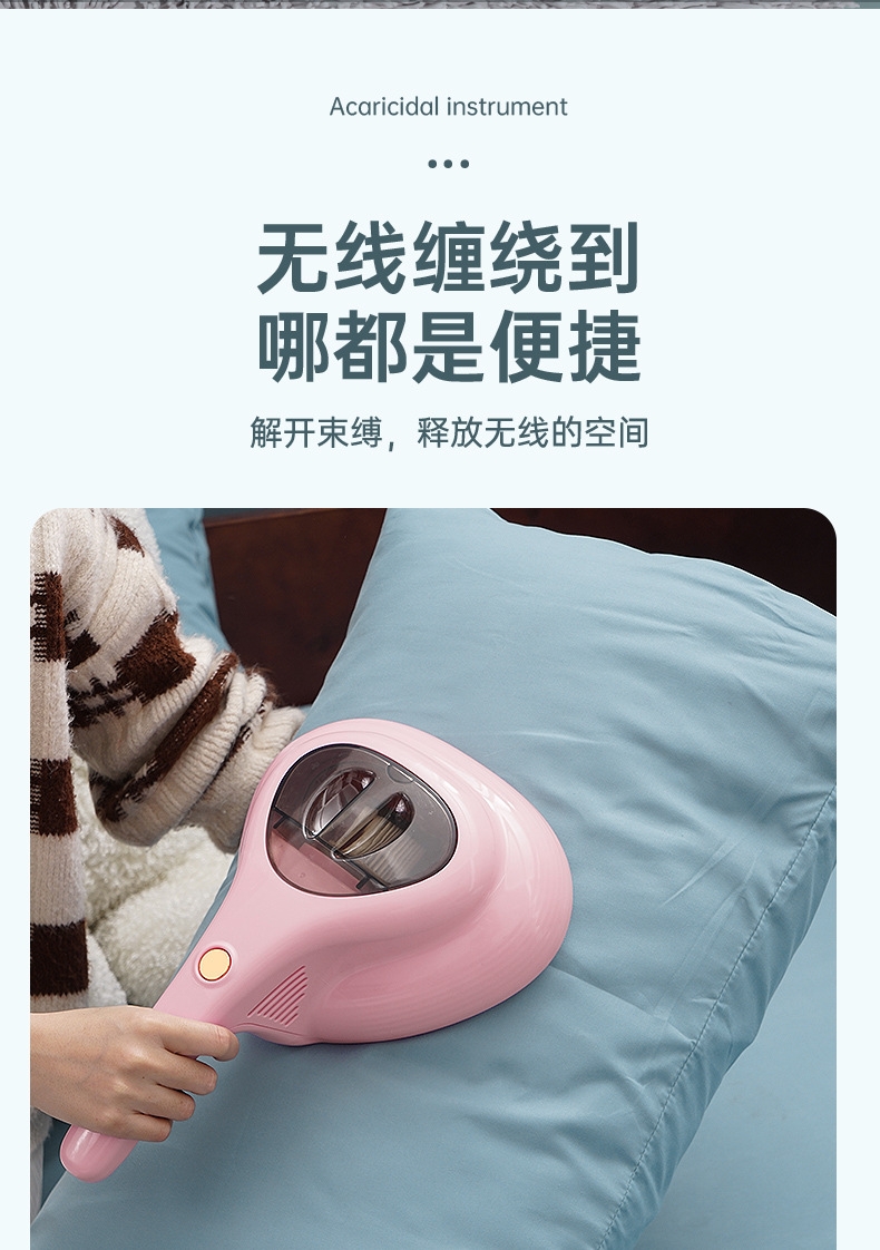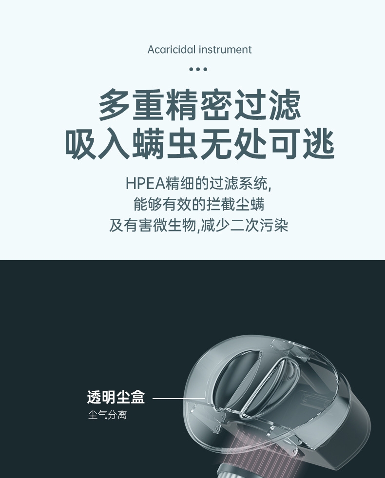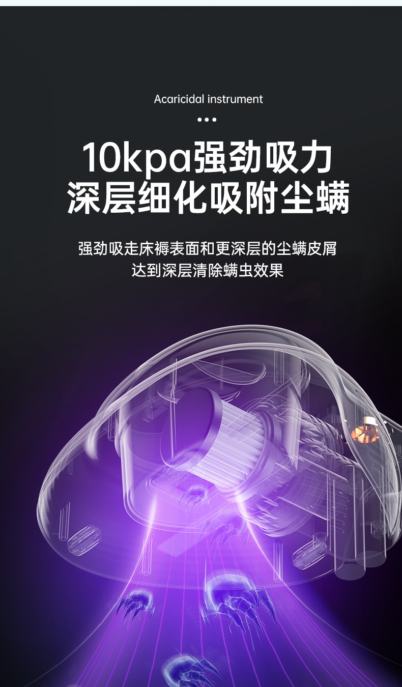 10kpa大吸力强劲吸附尘螨;350ML大尘杯尘螨看得见;无线束缚哪都方便清洁