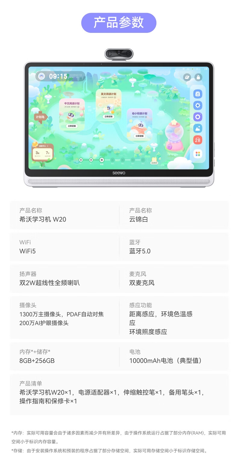 希沃 Ai双语启蒙儿童学习机学练机W20(8+256G)