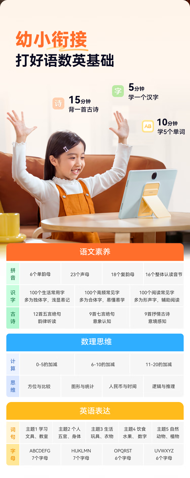 包装清单:学习平板V2Pro高思版x1,保护壳(支架一体)x1,智慧眼x1,USB线x1