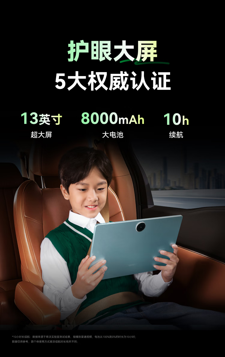 屏幕:13英寸,2A 3S双晶护眼;摄像头:前置800万+后置800万;电池容量:8000mAh