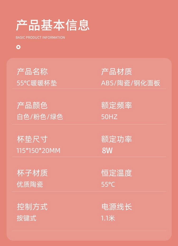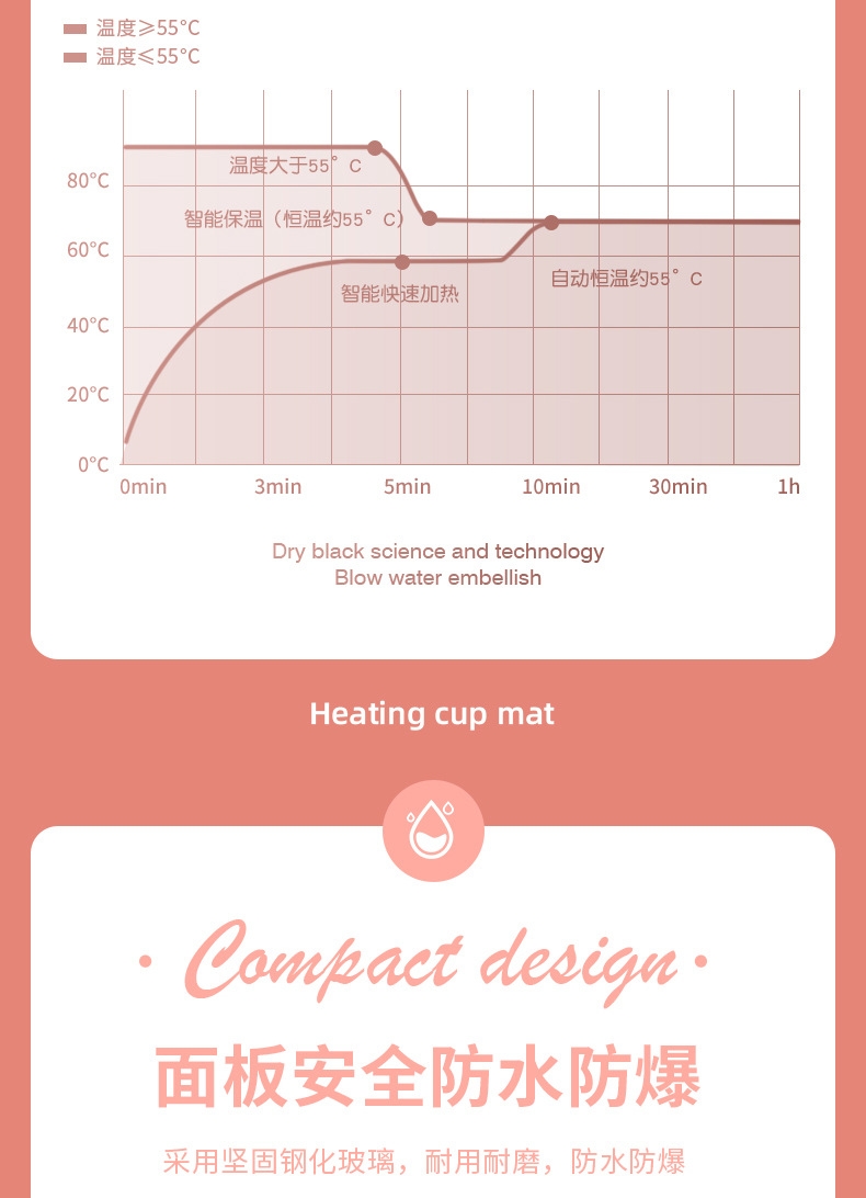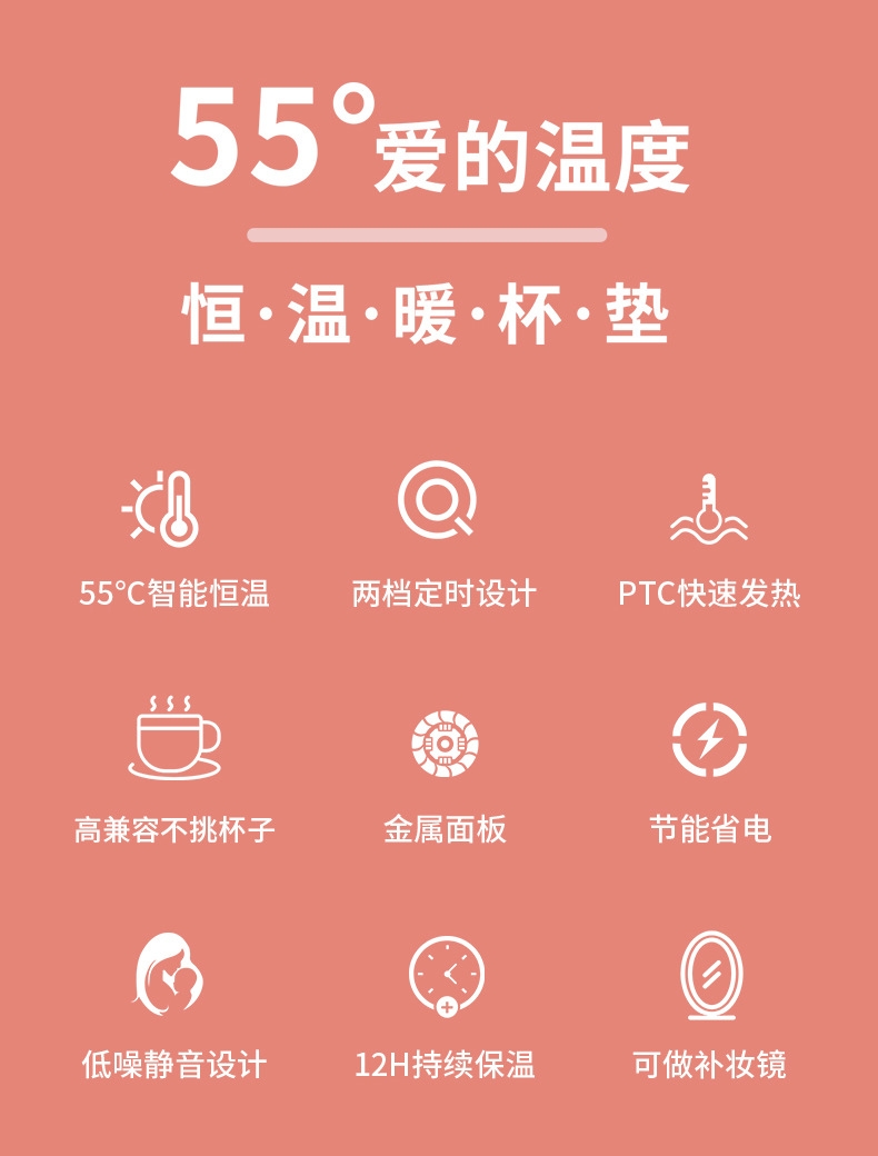 55℃C智能恒温;两档定时设计;PTC快速发热