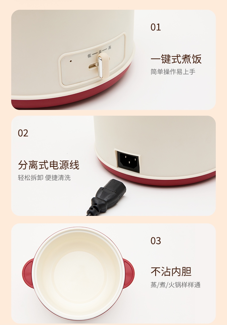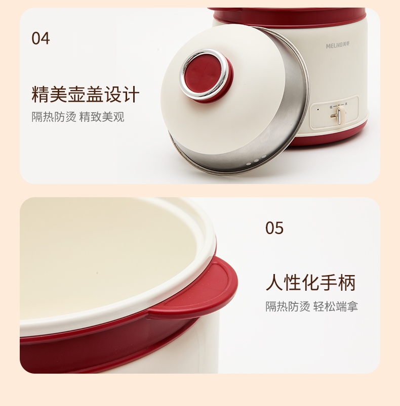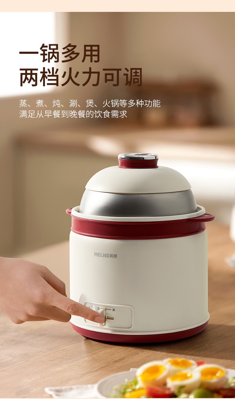轻巧便携,简约时尚的治愈系美学;蒸、煮、炖、涮、煲、火锅等多种功能于一身;满足从早餐到晚餐的饮食需求