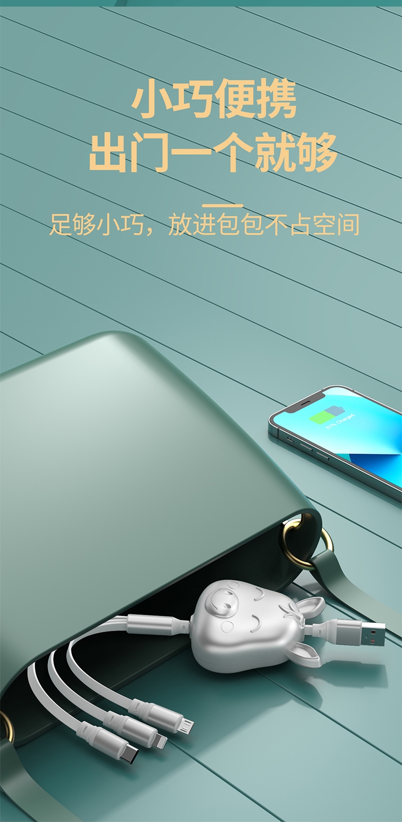 科迈升 萌马伸缩一拖三数据线YM-X301