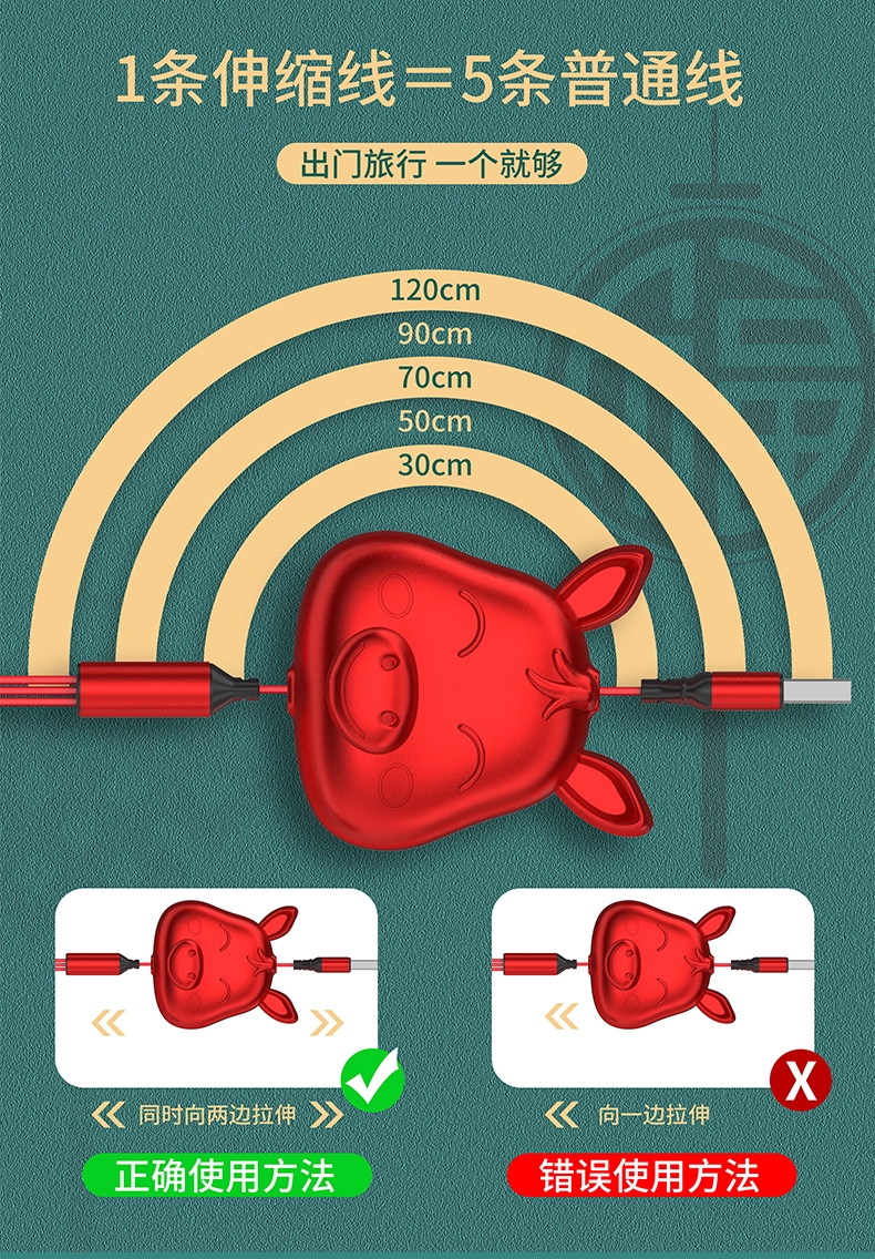 萌宠造型,马年吉祥;加粗铜线,安全更高效;20-120cm长度随心调节,不卡顿