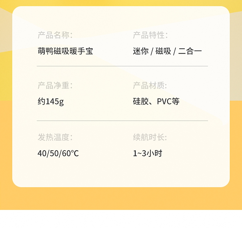 科迈升 萌鸭磁性暖手宝YM-GS008