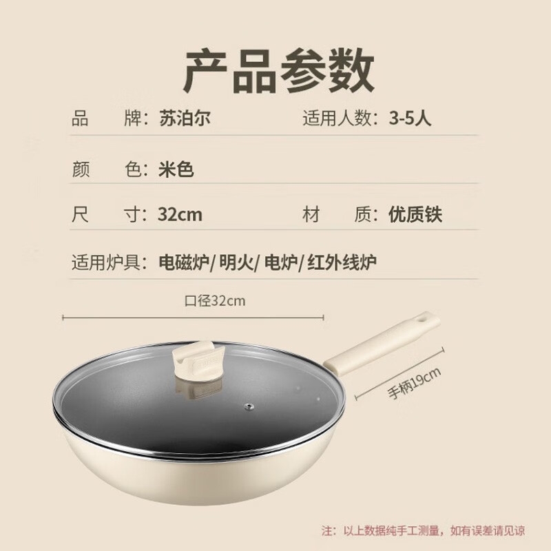 苏泊尔 抗菌炒锅32cm燃气电磁炉通用VC32SP05-WS