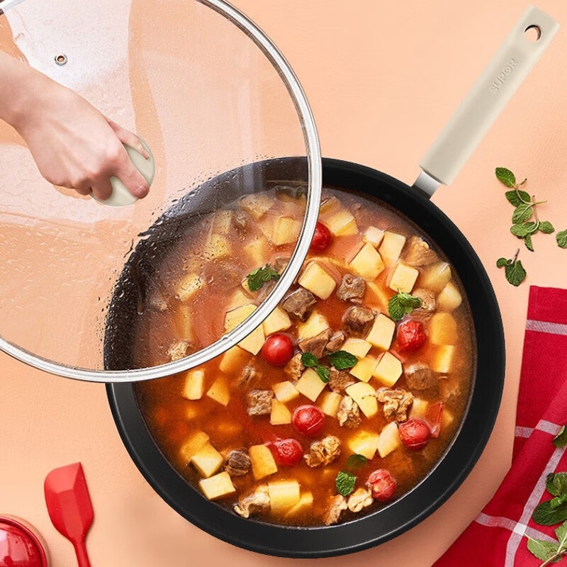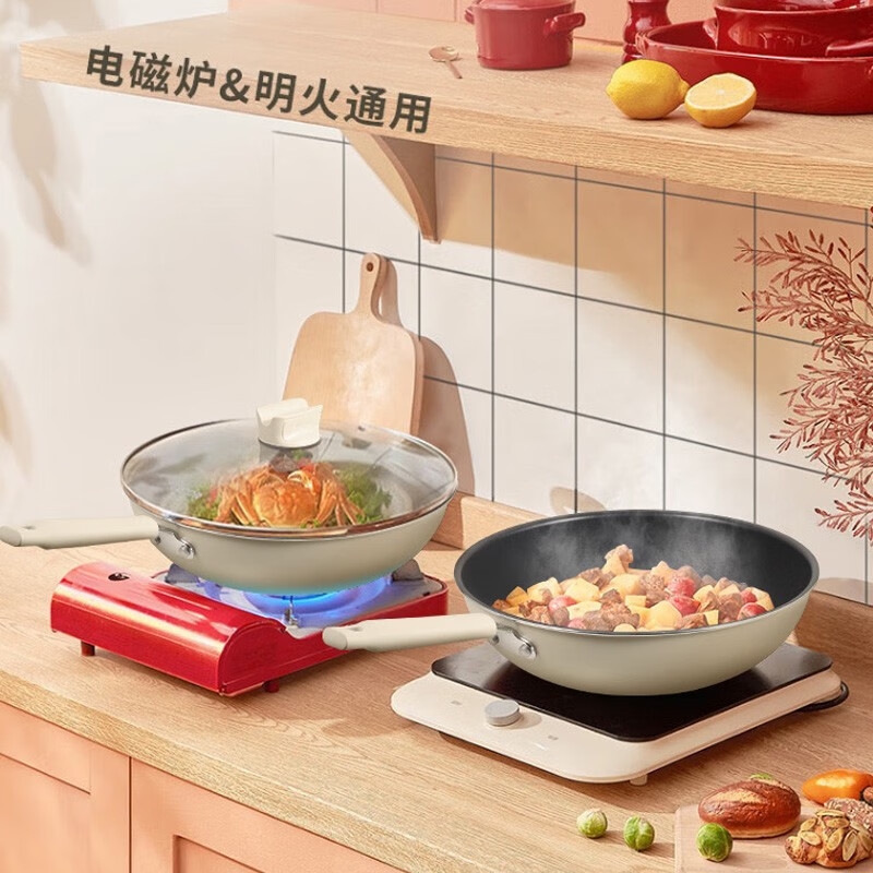 燃气电磁炉通用平底;科学抗菌不沾;翻边锅口,倒汤不洒