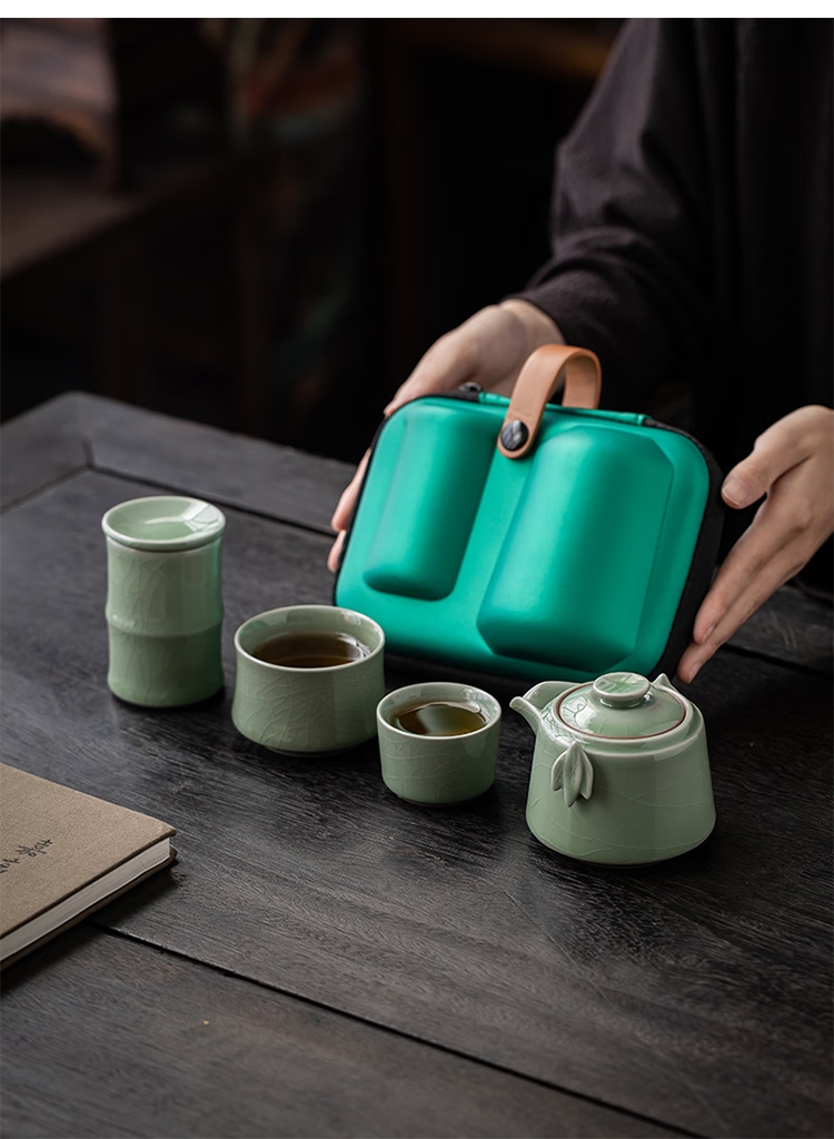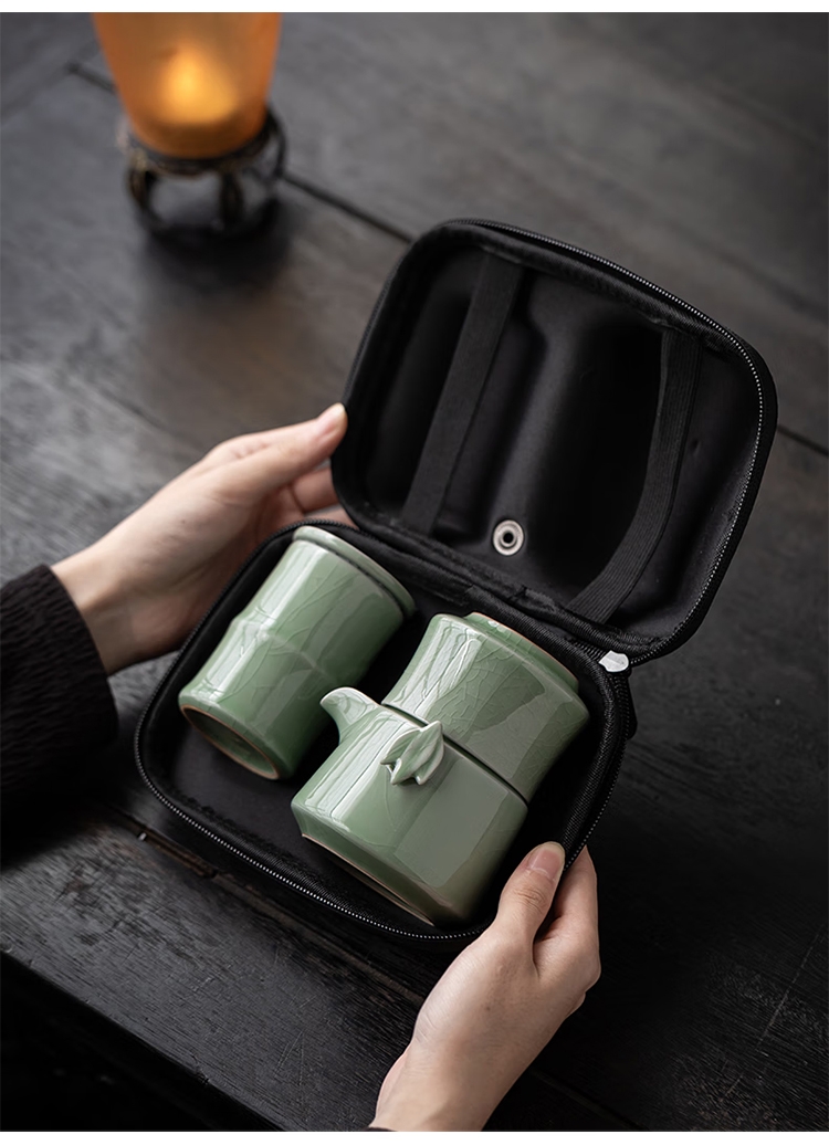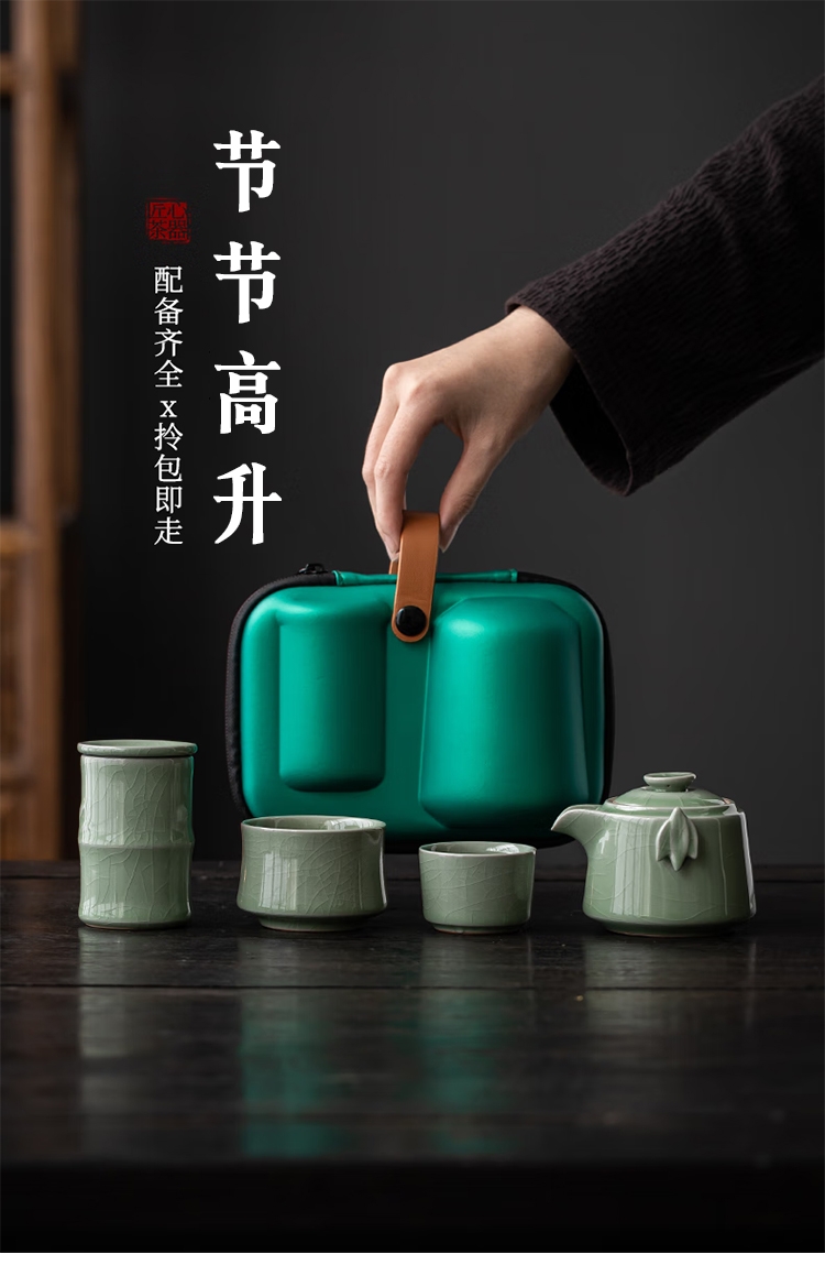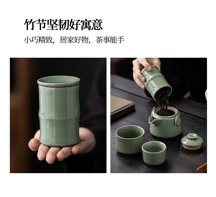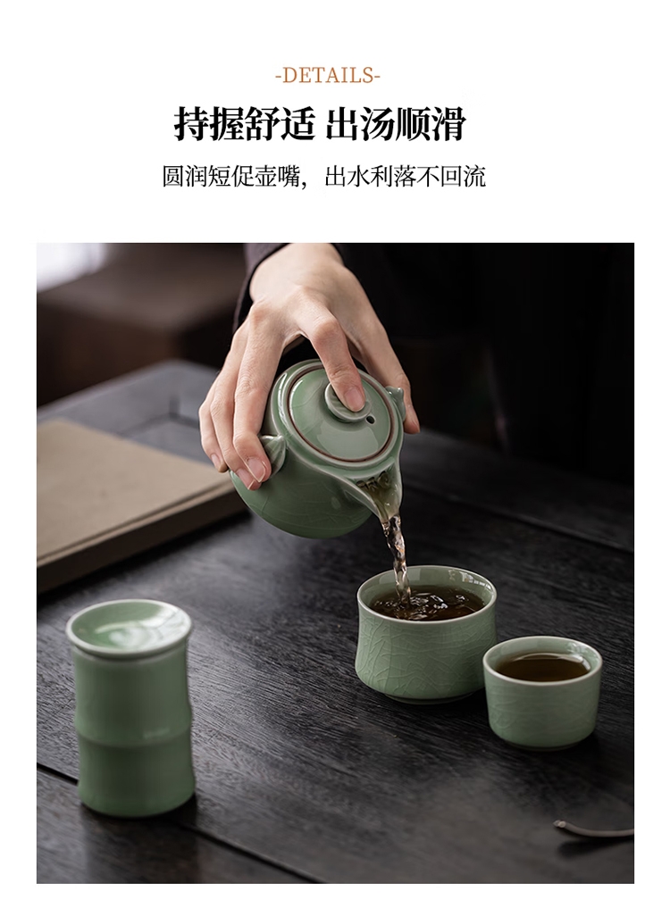 茶具以竹为形、以釉为魂,装进小巧行囊;便携安全包装,方便快捷;独一无二的裂纹