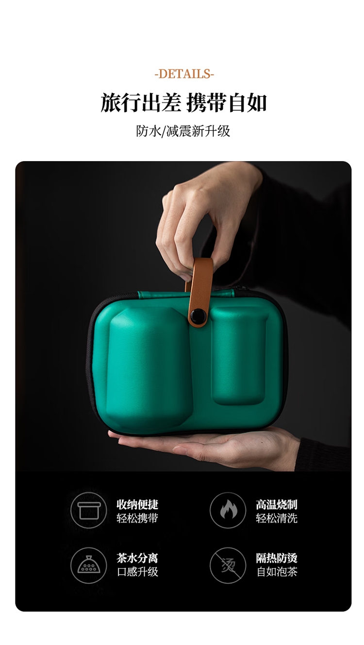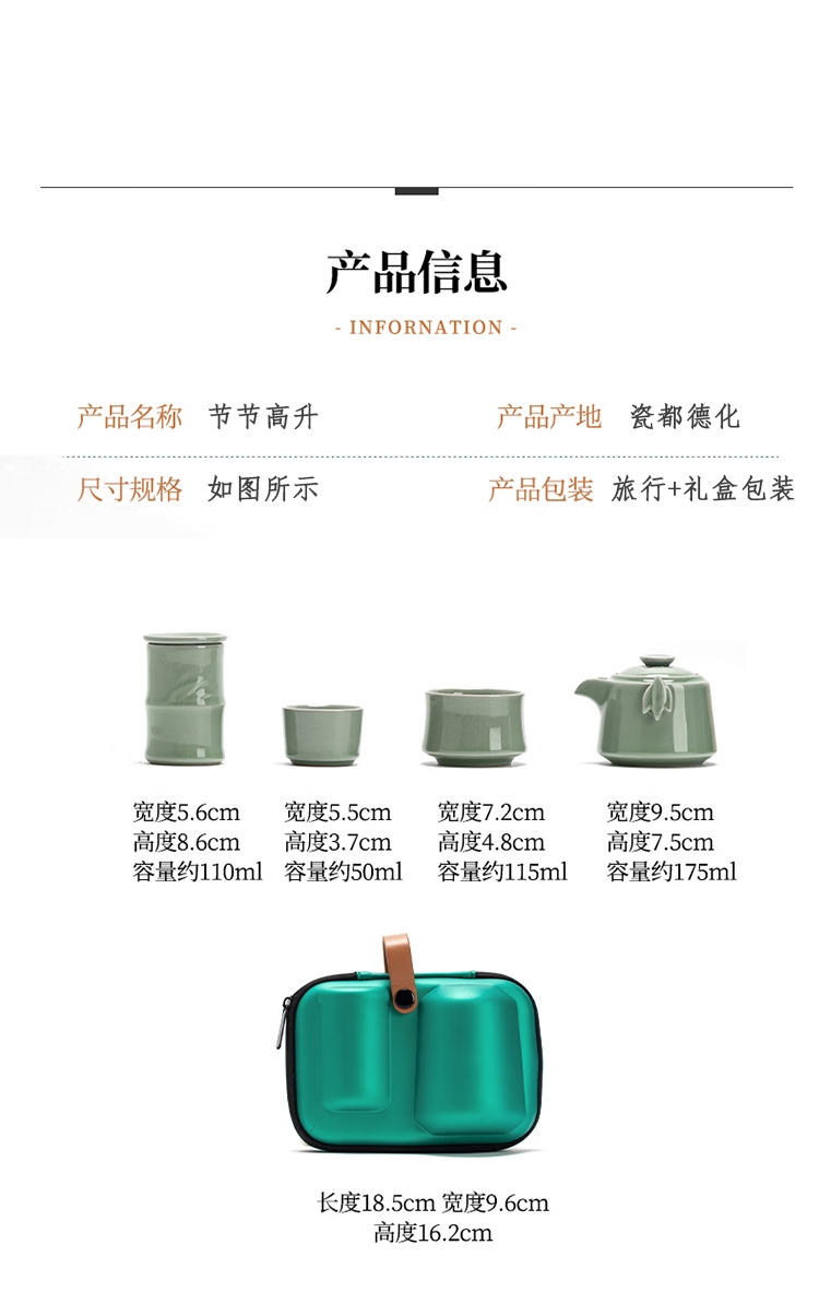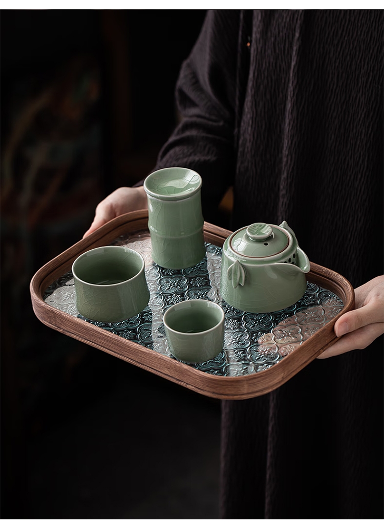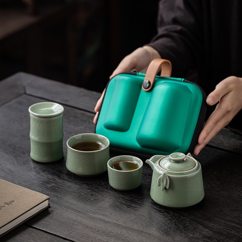 茶具以竹为形、以釉为魂,装进小巧行囊;便携安全包装,方便快捷;独一无二的裂纹