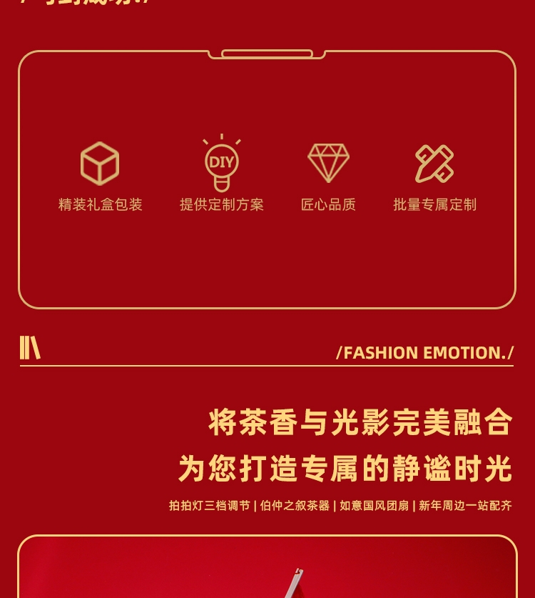 洒金艺术纸精美包装加对年红包门神中式宫扇年味拉满;一拍即合 拍拍夜灯三色光源画面可以定制专属图;精选伯仲之叙专利茶器套装 免费定制logo