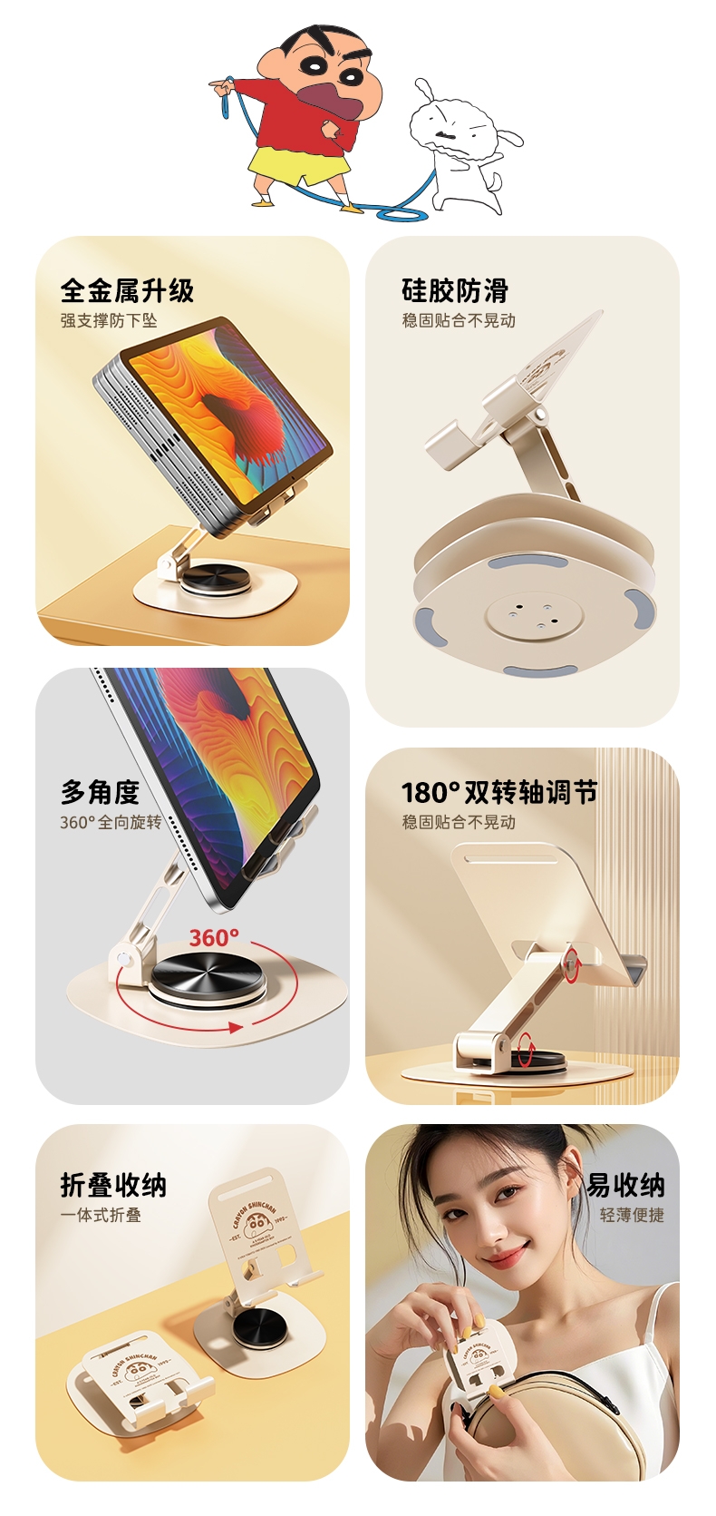 旋转自如,稳享精彩;金属升级,硅胶防滑;折叠收纳,便携外出