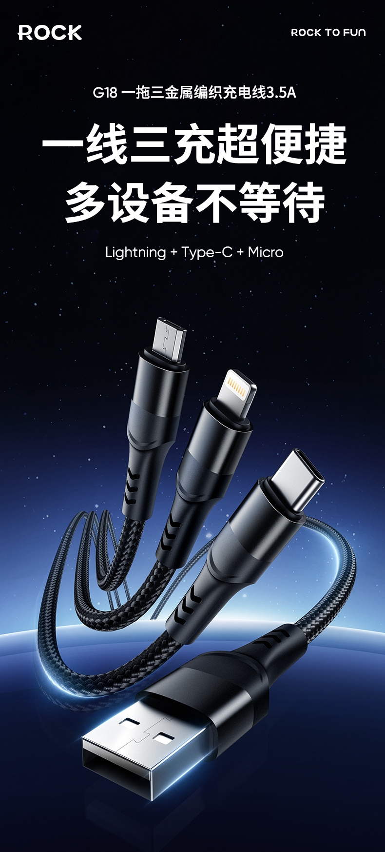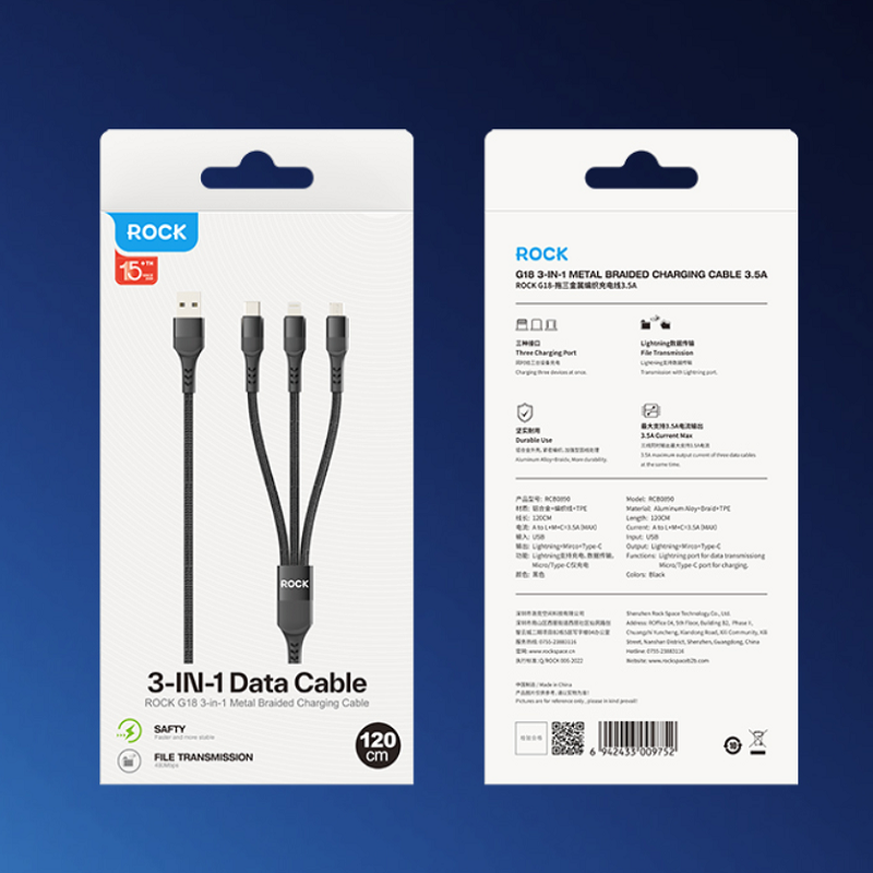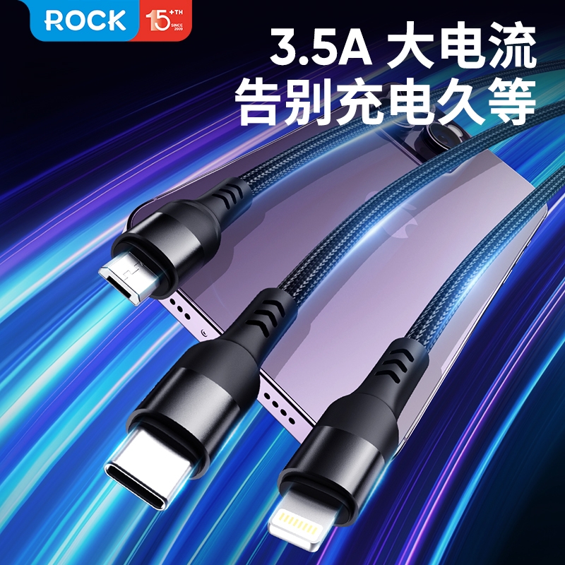 ROCK 一拖三金属编织充电线RCBO890