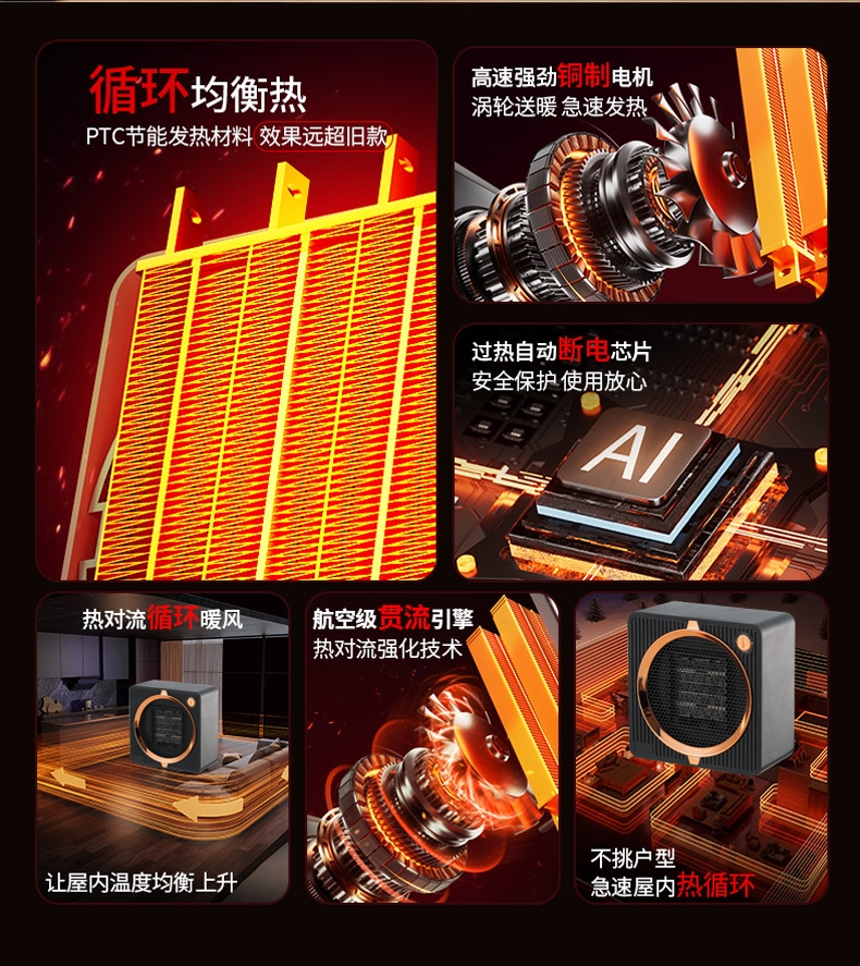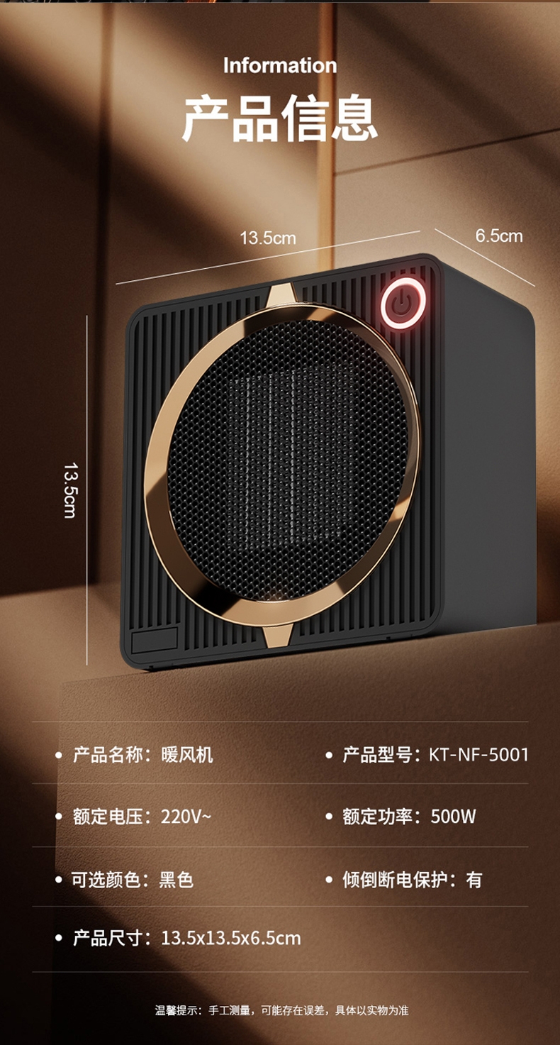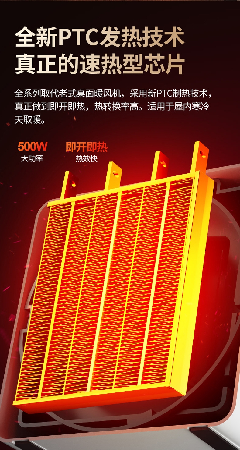500W大功率,即开即热,快速升温不等待;机身采用优质 ABS 材质,质地坚固耐磨;双重安全防护,使用更安心,底部配备倾倒断电保护;机械式开关设计,单档模式操作简单,零门槛;安全可靠,项目可控