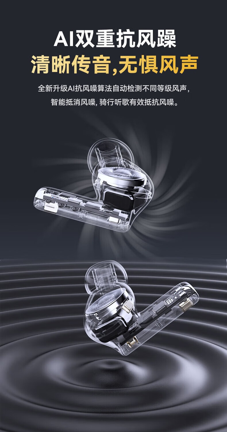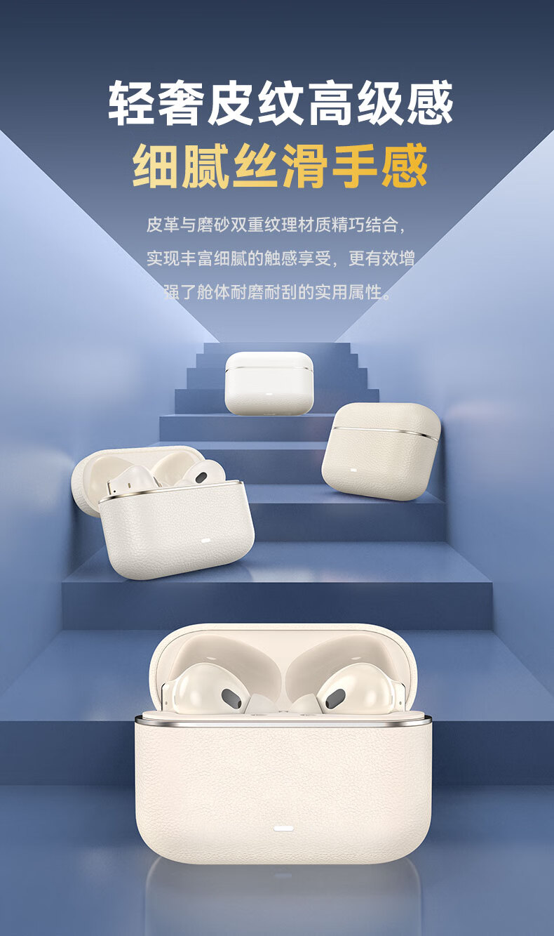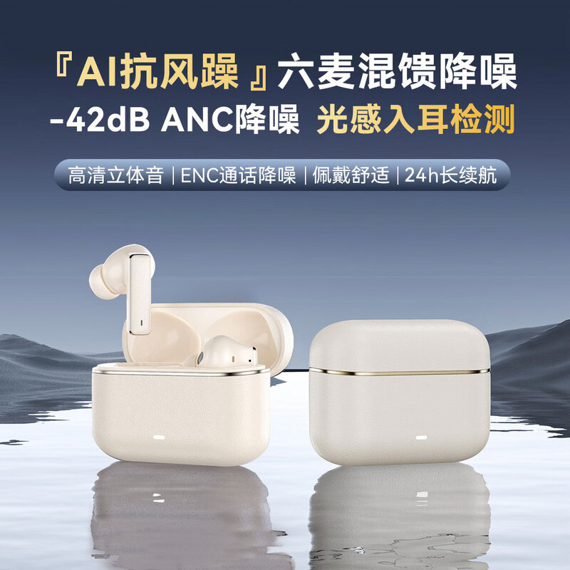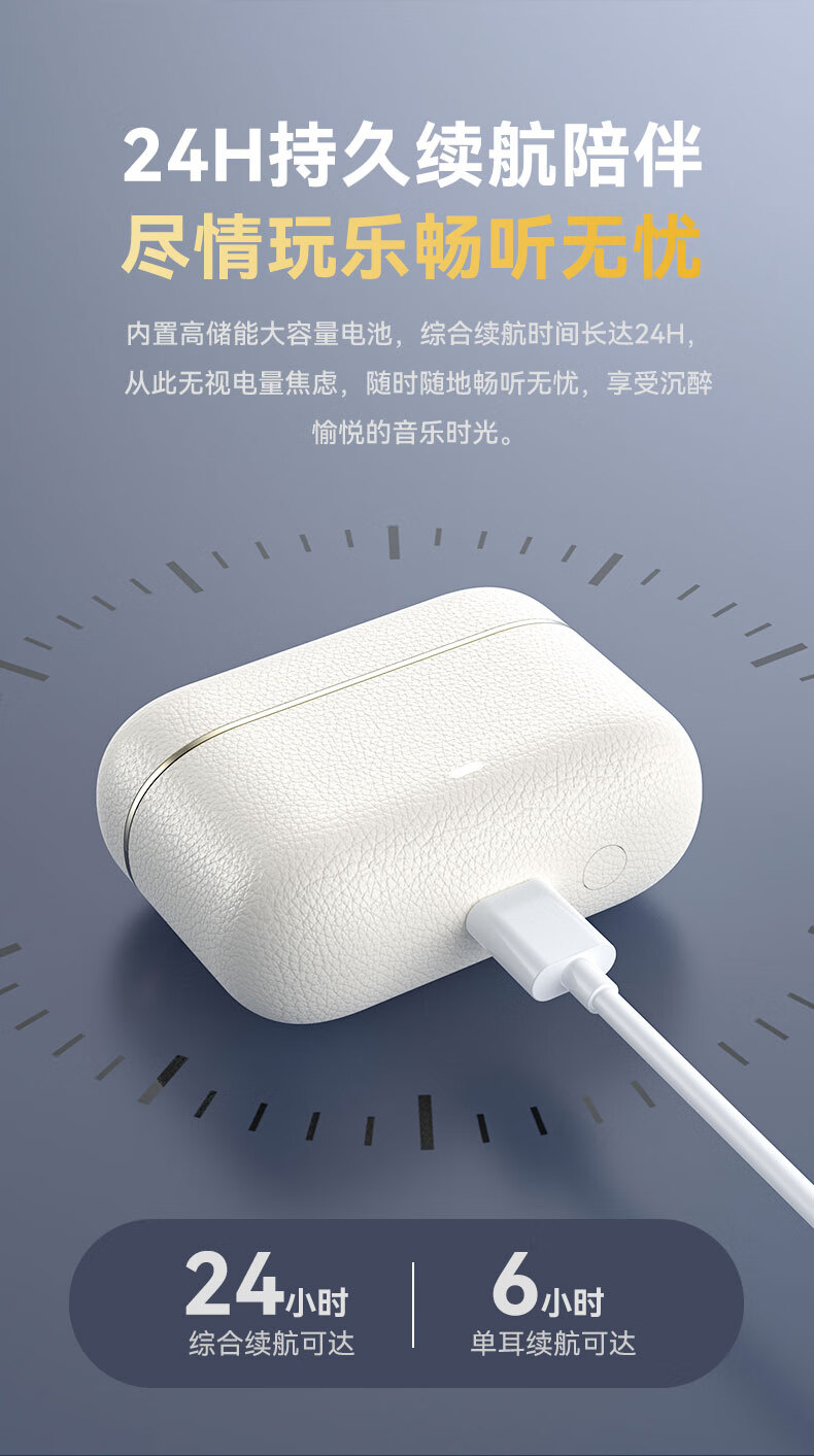 皮革磨砂双材质,耐磨触感细腻;13mm 动圈 + 镀钛振膜,音质鲜活低失真;双降噪 + 24h 续航,安全实用