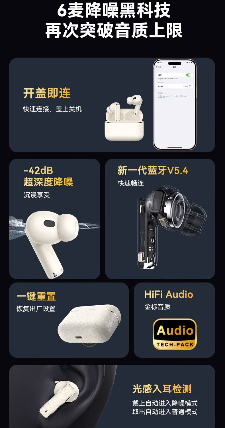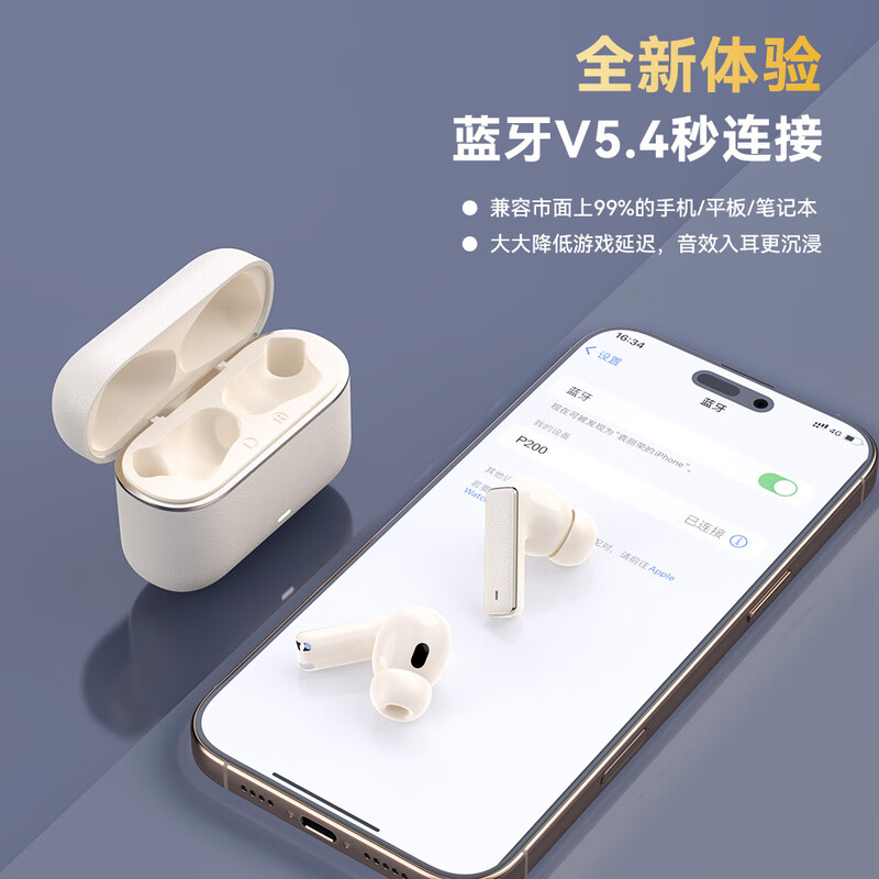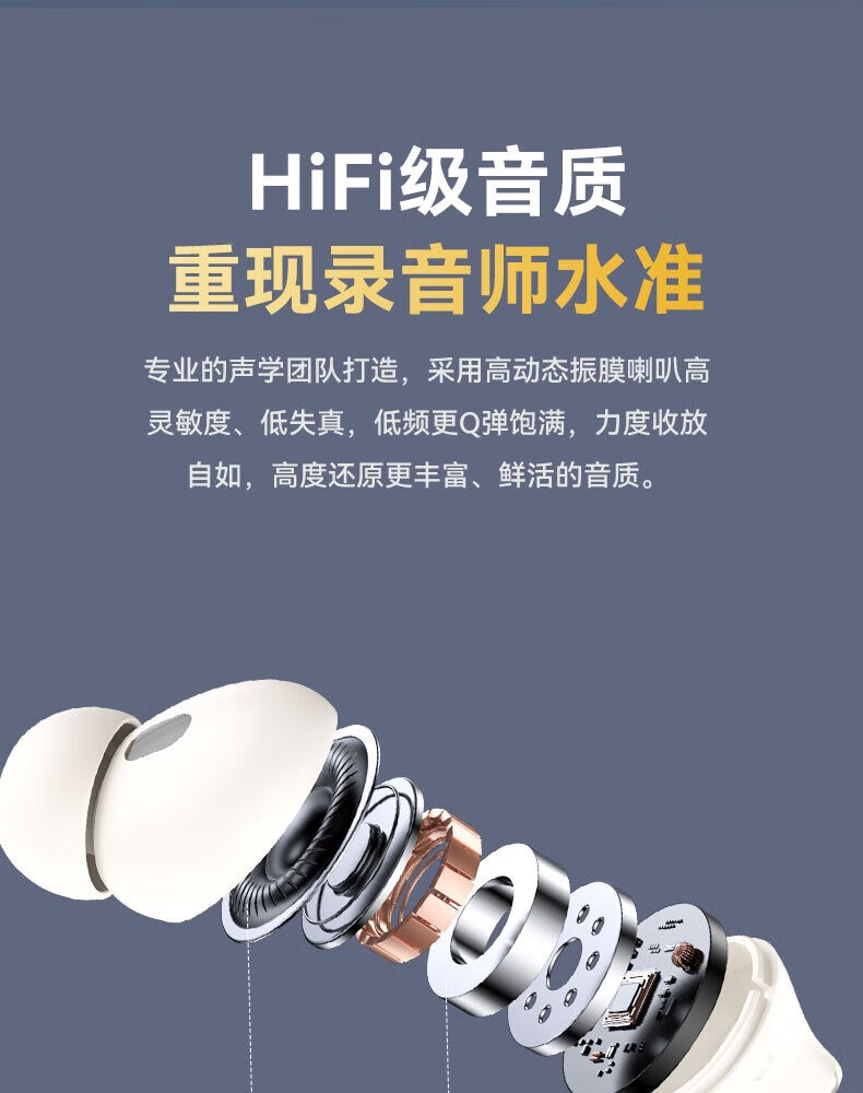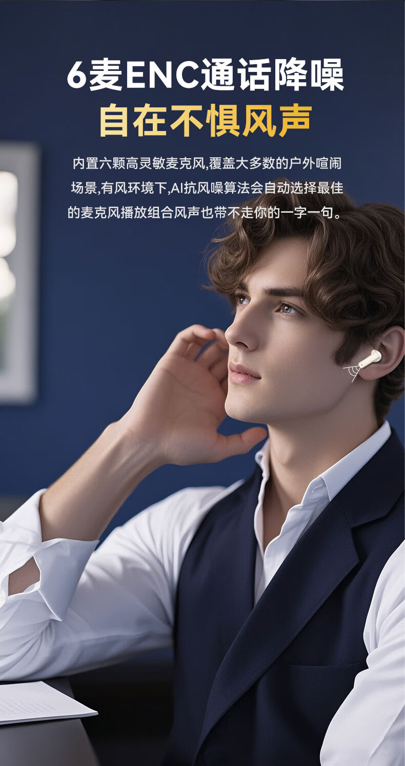 皮革磨砂双材质,耐磨触感细腻;13mm 动圈 + 镀钛振膜,音质鲜活低失真;双降噪 + 24h 续航,安全实用
