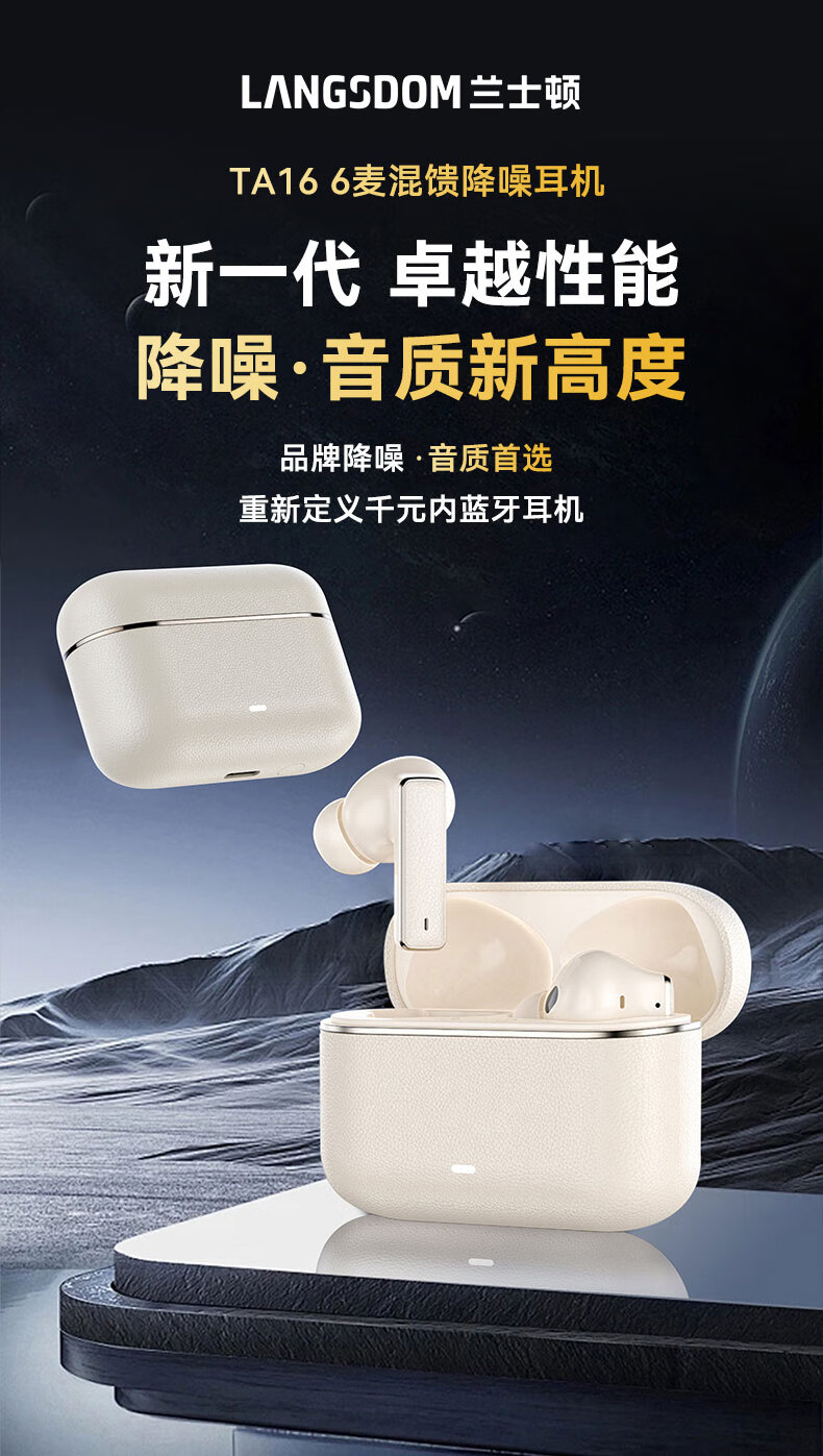 兰士顿 主动降噪音乐蓝牙耳机米白色TA16