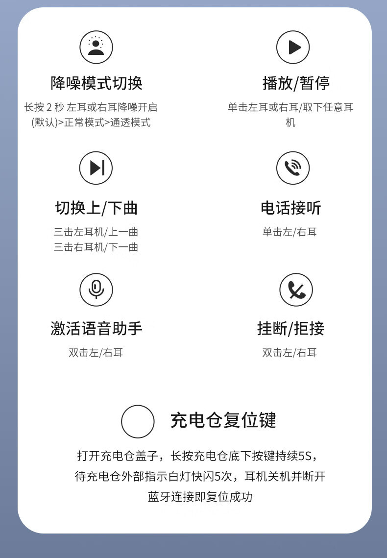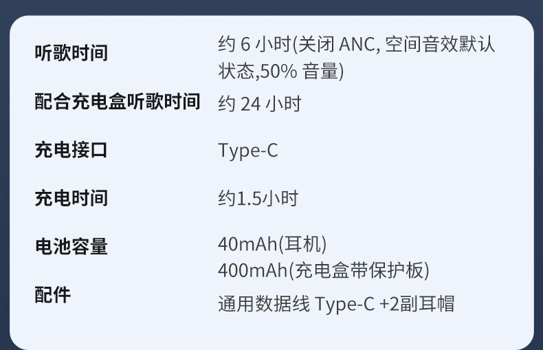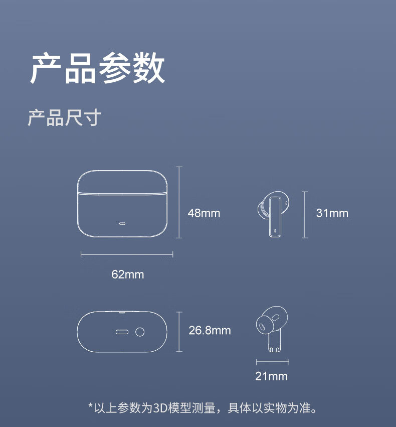 配置清单:耳机*1 说明书*1 充电线*1 替换耳帽*2