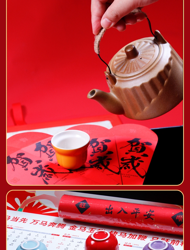 青锦 茶壶围炉茶具对联红包挂历礼盒