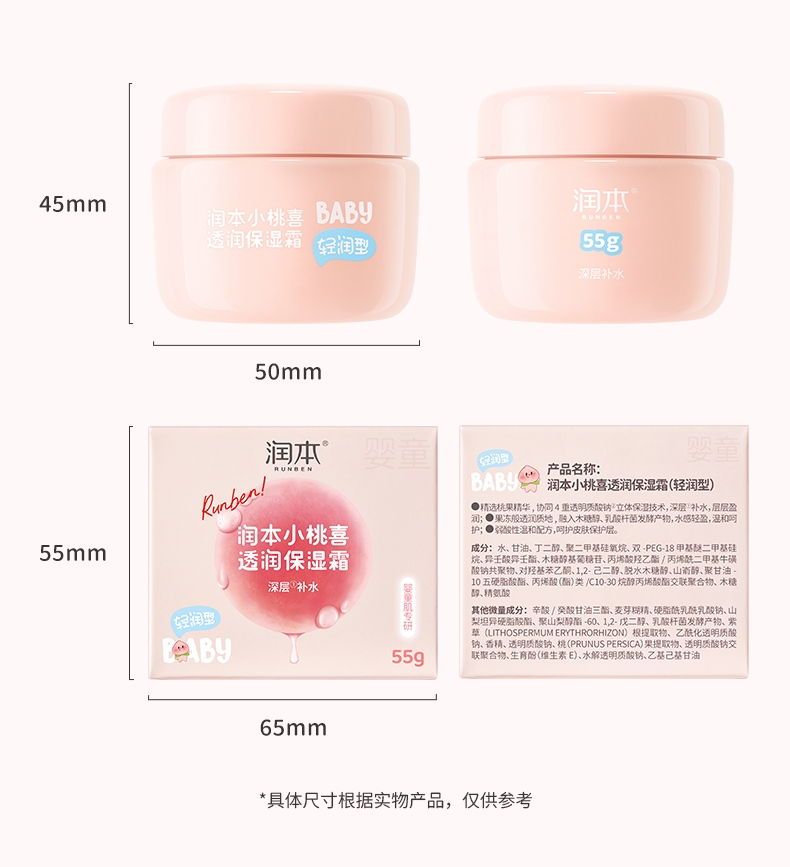 配置清单:润本小桃喜透润保湿霜(轻润型)55g*1