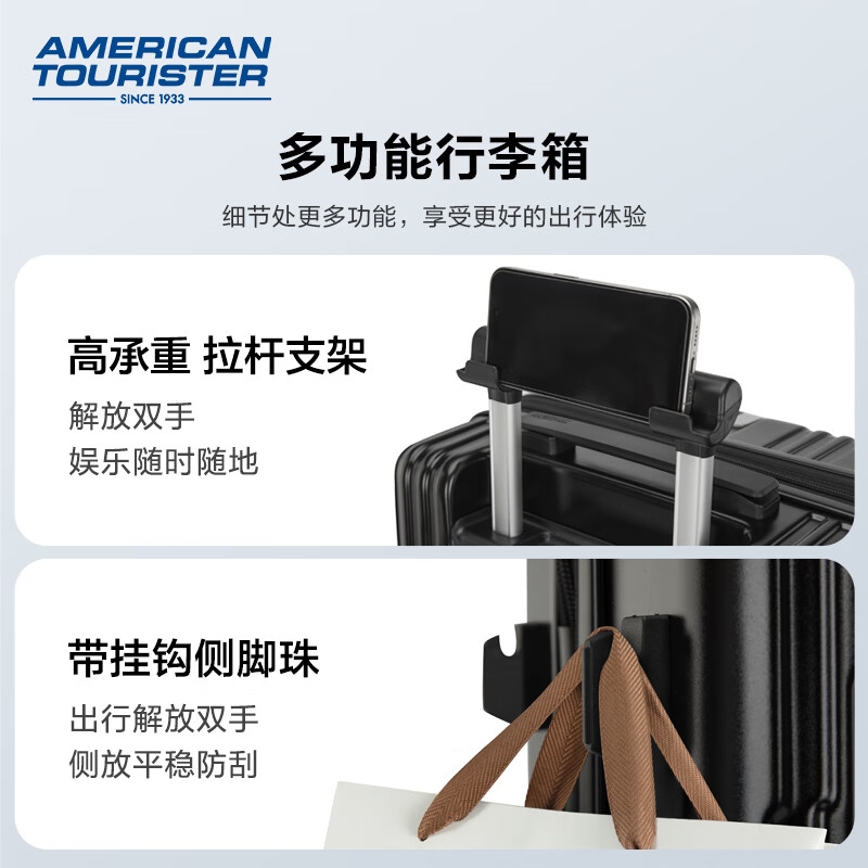 柔韧抗撞,防刮耐磨,无惧暴力运输;;顺滑飞机轮,低噪减震,承重力强,轻推更省力;丰富隔层,可扩展,增添更大容量,科学收纳