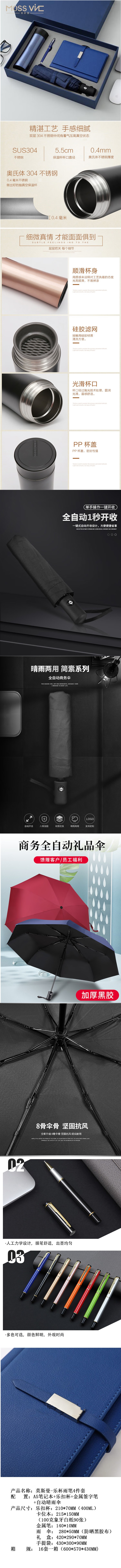 莫斯曼 保温杯自动晴雨伞笔记本套装
