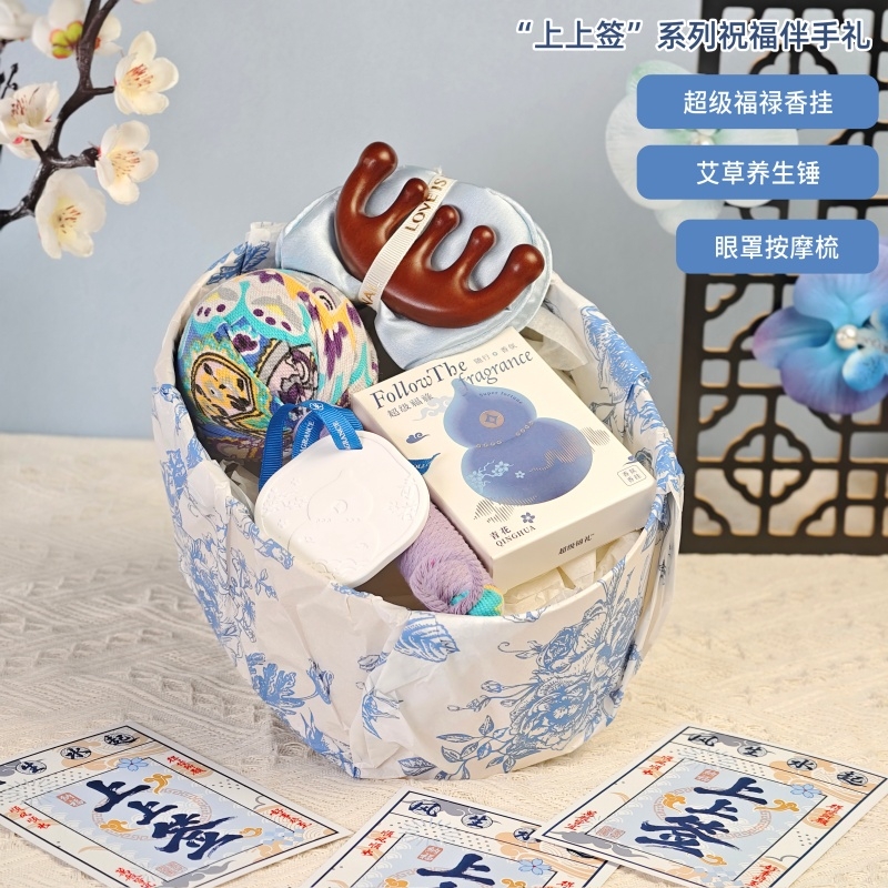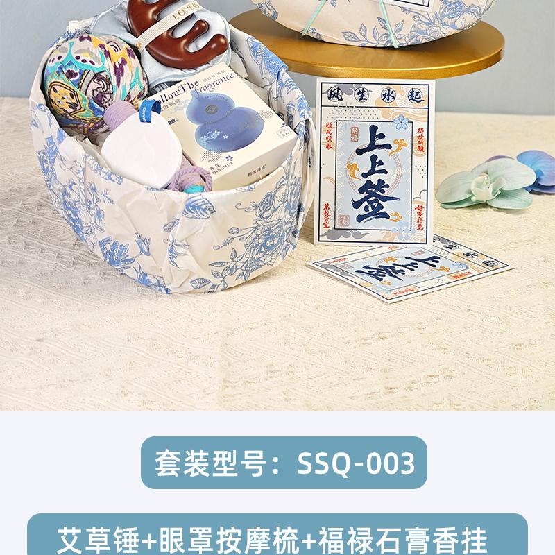 配置:艾草养生锤、眼罩按摩梳、褔禄石膏香挂、古风绑绳礼盒+上上签贺卡