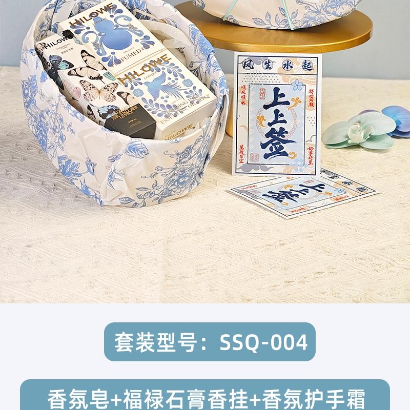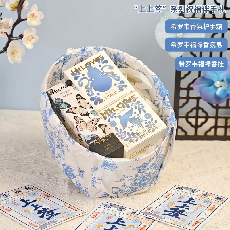配置:希罗韦香氛皂80克、希罗韦福禄石膏香挂、希罗韦香氛护手霜45克、古风绑绳礼盒+上上签贺卡