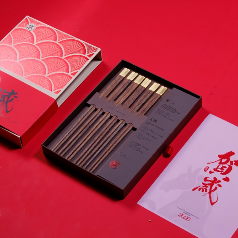 配置:鸡翅木筷子x6 精装抽屉式礼盒手提袋*1