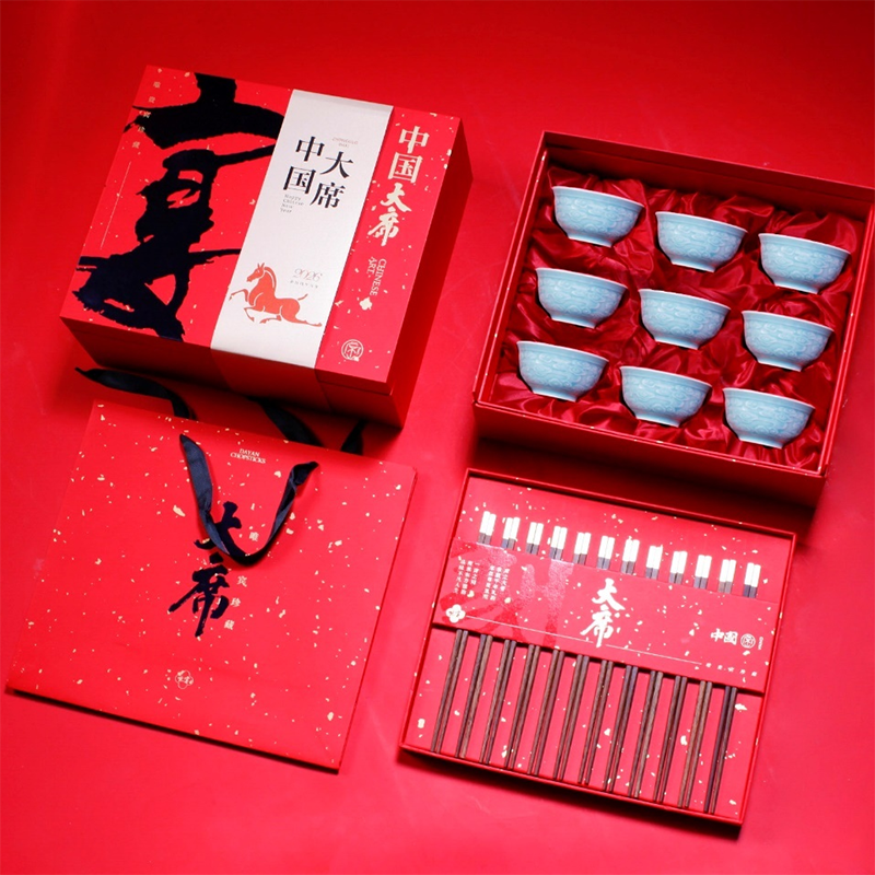 大宴 宴遇青云木筷陶瓷碗礼盒