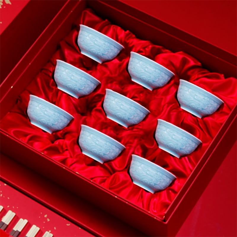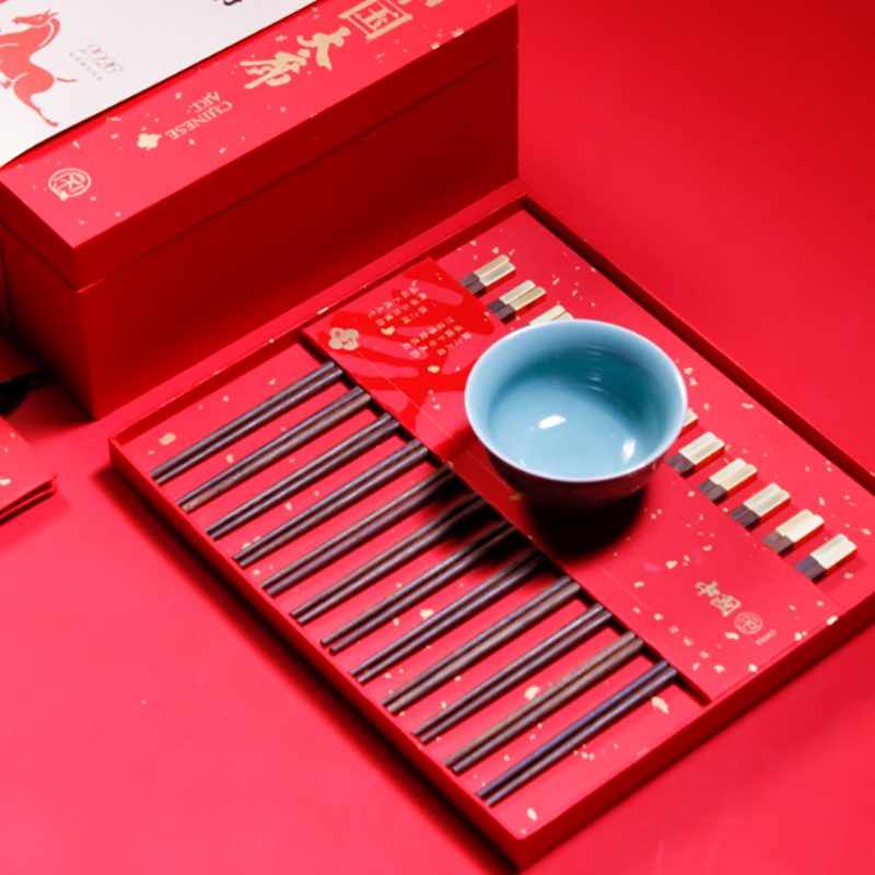 配置:鸡翅木筷x12 景德镇青云陶瓷碗 x9 双层式精装礼盒手提袋*1