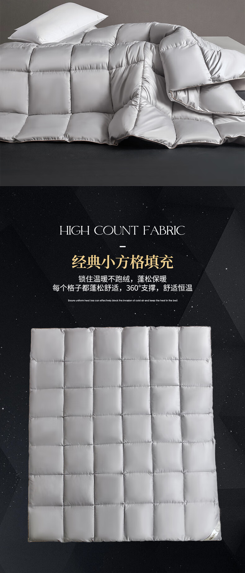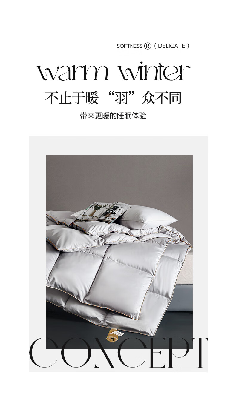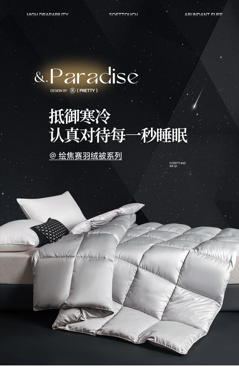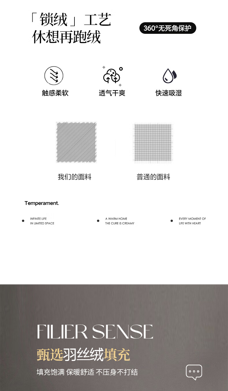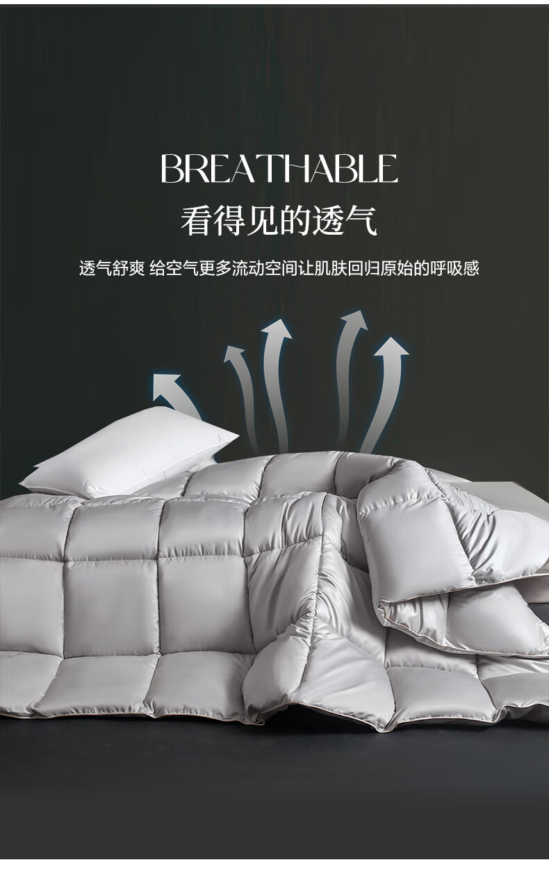 甄选珠光棉面料,手感软糯细腻,珠般光泽,软糯厚实;黄金抗菌羽丝绒填充,纤维紧密锁定空气;3D立体航空舱绗缝设计,立体立衬分区