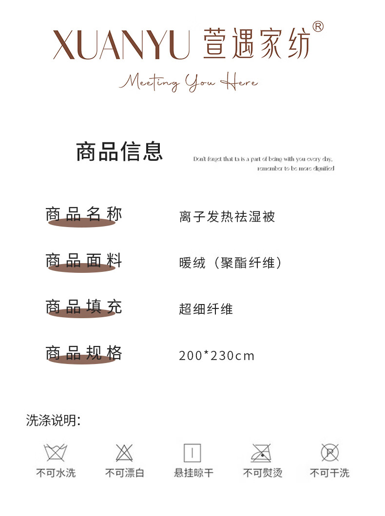萱遇家纺 离子发热祛湿被X-D2570