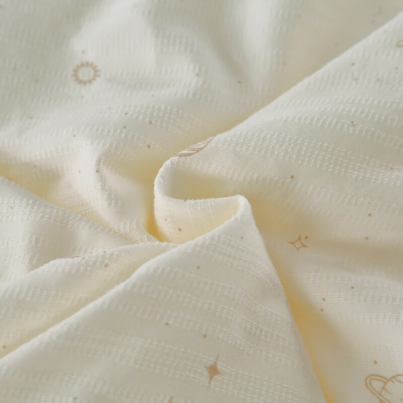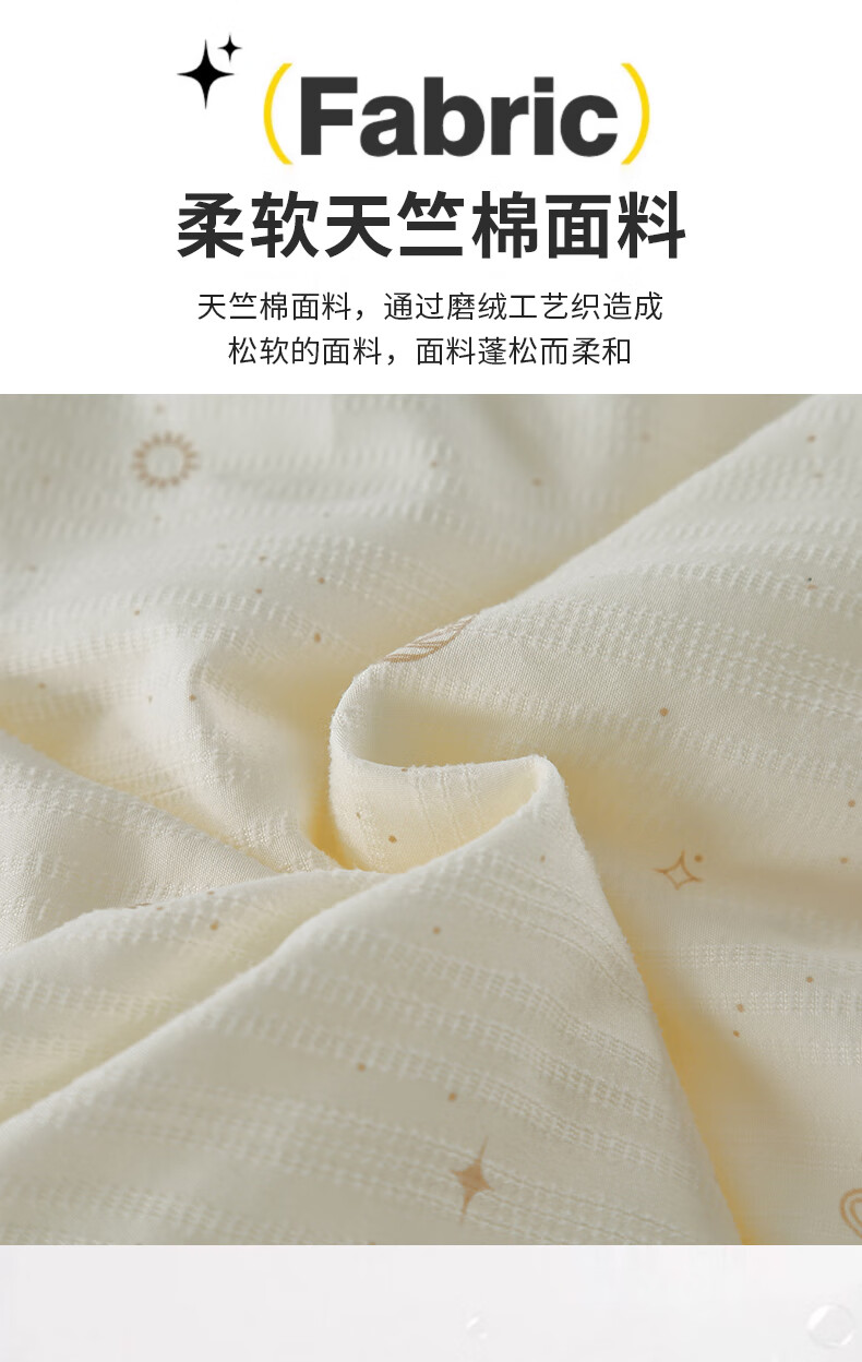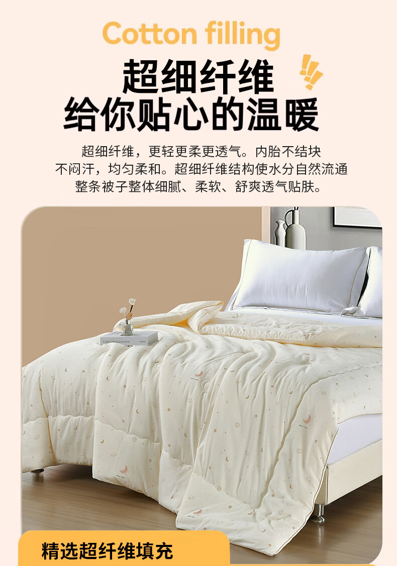 天竺棉面料,通过磨绒工艺织造成松软的面料;超细纤维,更轻,更柔,更透气;整条被子整体细腻,柔软,特别舒爽,防静电