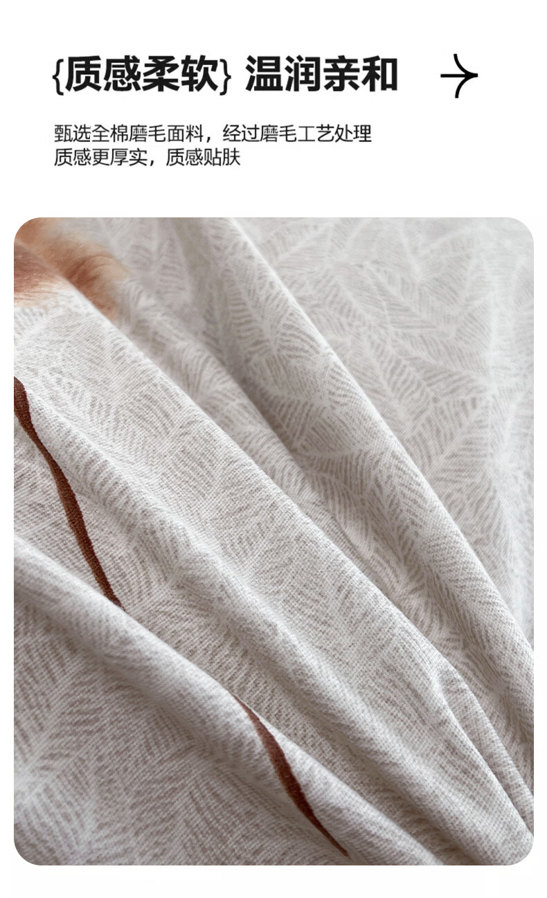 .严选全棉磨毛面料制作,手感柔软;舒适质感丰厚,而且有厚重感,不褪色,不缩水;面料采用活性印染工艺,层次感非常强