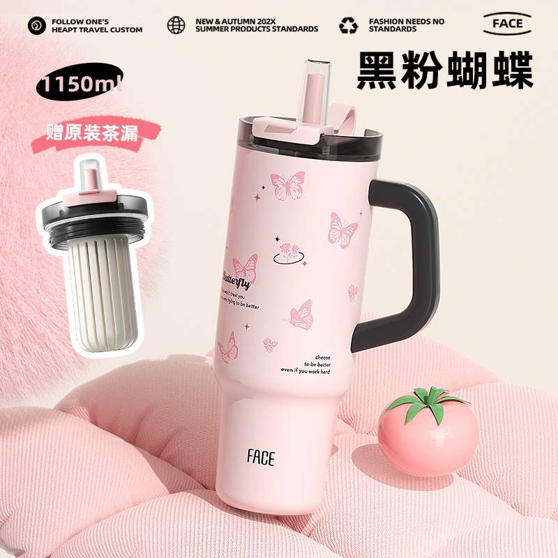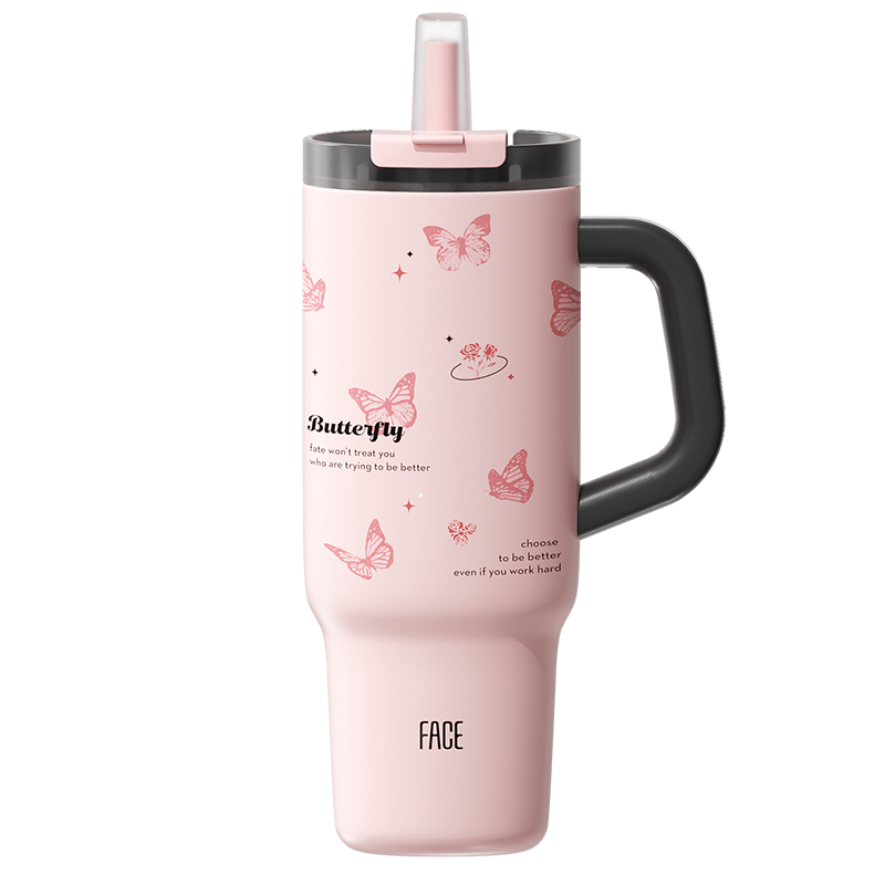 Face 一盖双饮巨无霸保温杯黑粉蝴蝶1150mlFA-KV130A