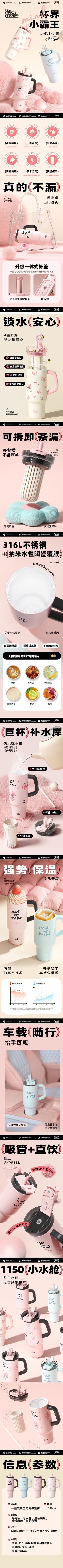 材质:316L不锈钢内胆+陶瓷覆层,杯盖PCTG 吸管、茶漏:食品级PP