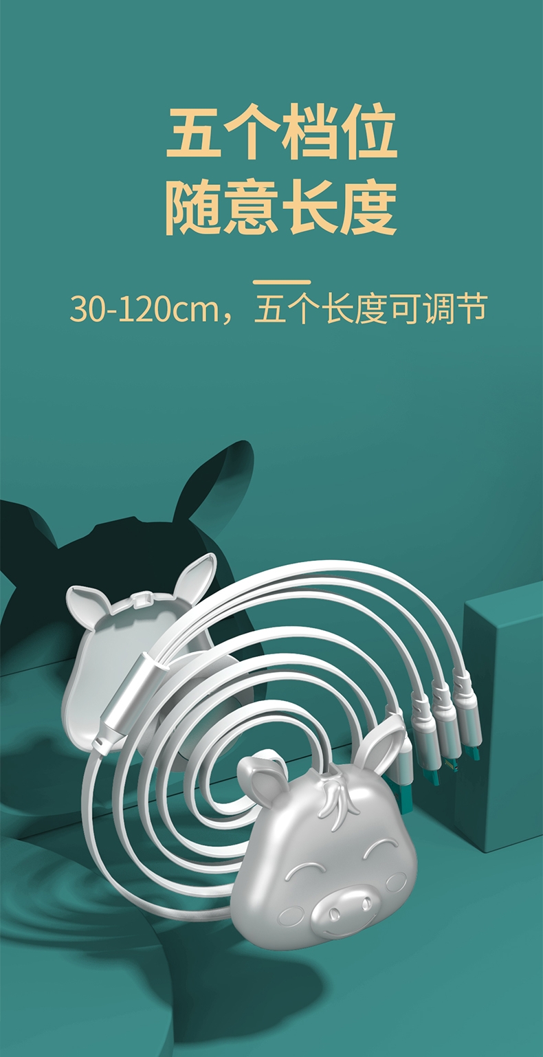 5A超级快充 充电更快; 一秒收纳 五档伸缩;小巧便携 方便携带